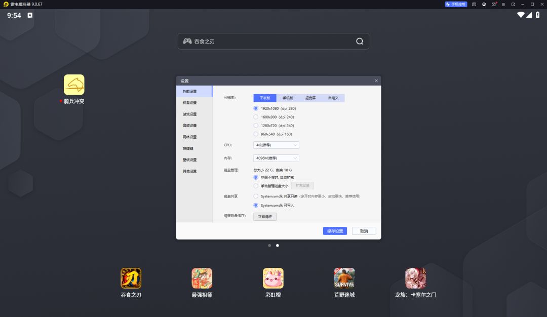 1、推荐使用雷电模拟器9.0.67 64位 2、竖板 请设置分辨率为720*1280 或者1080*1920 3、横版 请设置分辨率为 1920*1080 通过网盘分享的文件:骑兵冲突-兼容比较好的安卓模拟器和教程 链接: https://pan.baidu.com/s/1ohBXAIj6fQ8nI5gFc8x93w?pwd=sxda 安卓游戏下载地址: https://www.taptap.cn