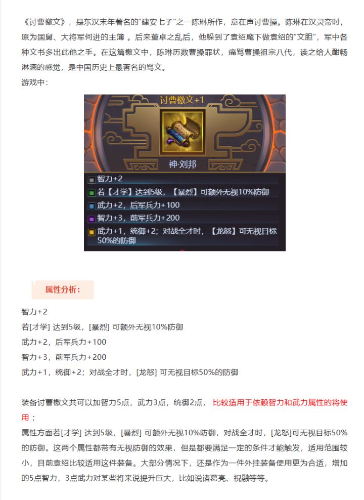 【装备介绍】玩法大师说讨曹檄文——大佬必看