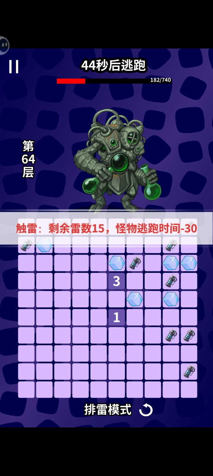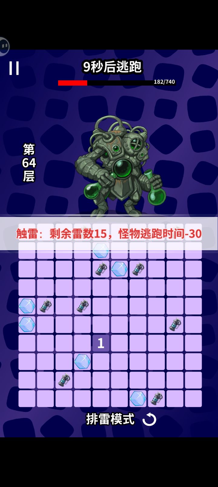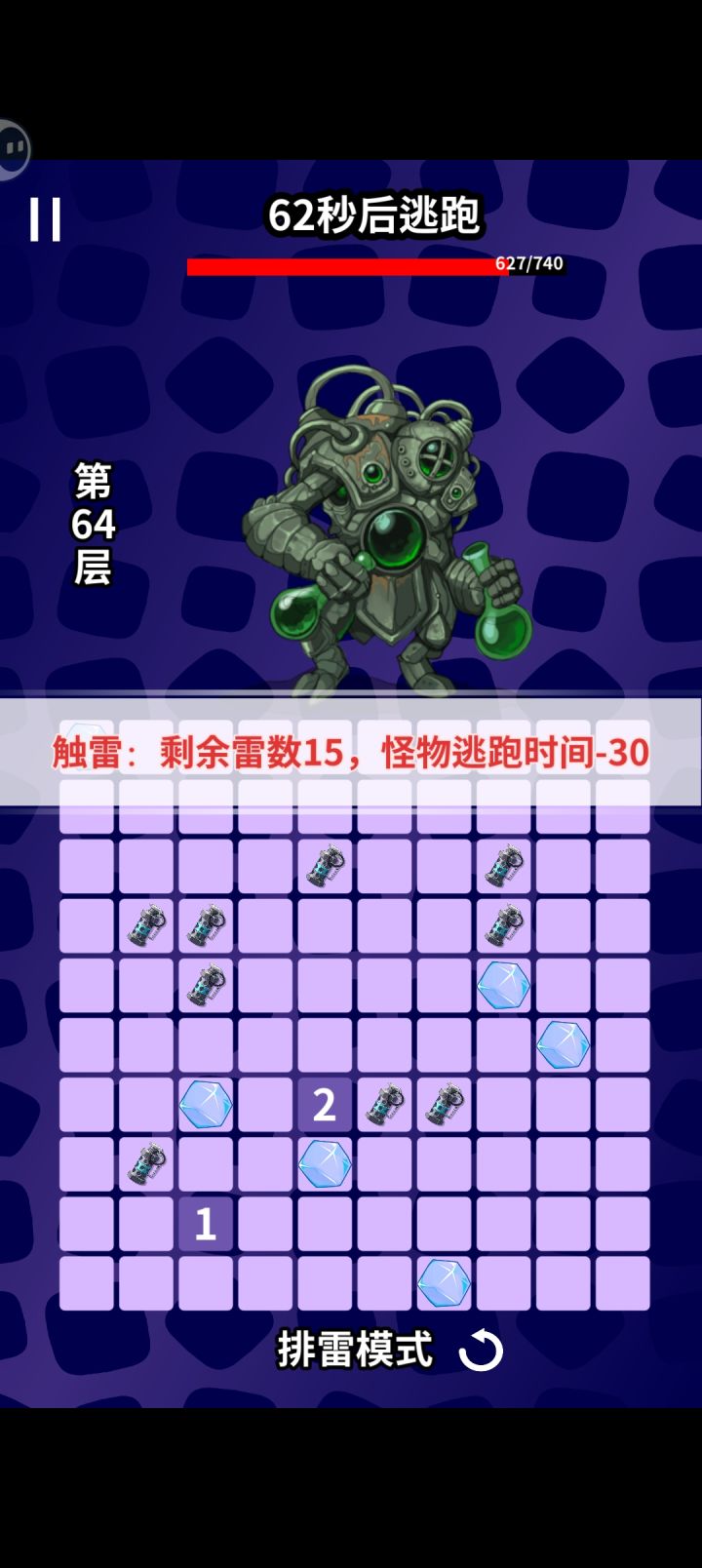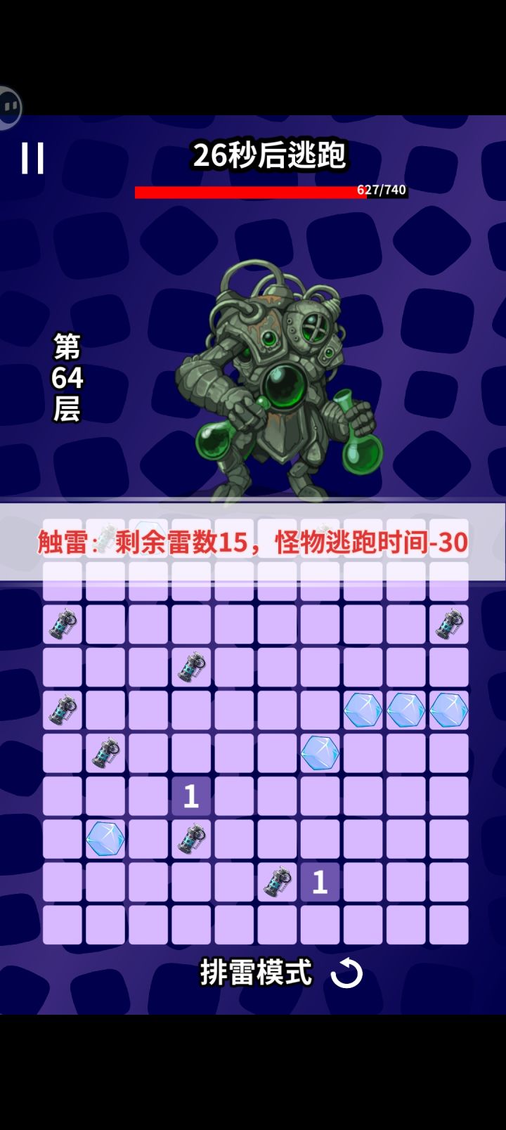 优先减少,然后随便点出空地,转角的地方都是雷,直接引爆就行,把空的地方排掉+20秒,再点开空地把转角全部引爆无限续航无限引爆