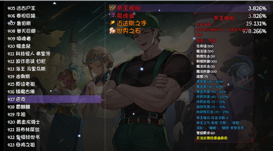 本攻略仅针对地狱及以下难度。 绝望挑战还没玩过,不过看论坛讨论,绝望挑战难度极高。 地狱难度第四关过关图镇楼。 趁着还有点记忆,一点点更新各层难度,以及解锁事件。 商店解锁道具没仔细看,主要是药水及捕捉球。 大家有记得的可以帮忙补充下。 目前地狱难度到第八层了,后续我过关后在评论补充。 第一层:难度较低。过关后解锁自动战斗 第二层:难度较低。我忘了 第三层:难度一般。过关后解锁招募官,等级解锁到1
