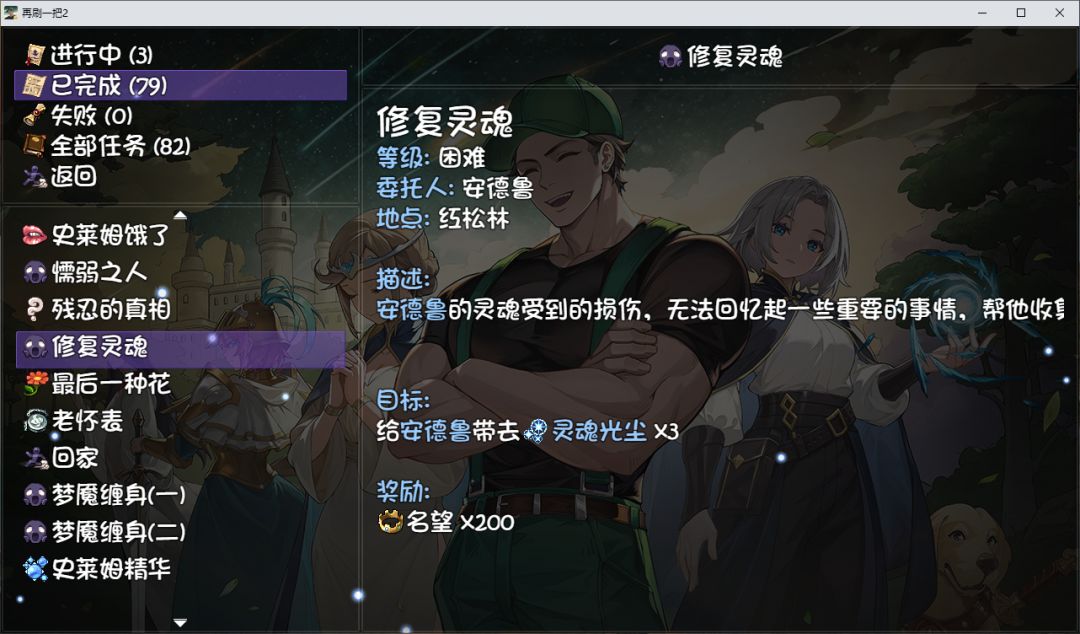倒数第三个人物开整,速通不做什么任务,地狱模式不愧是地狱。。。一路磕磕碰碰刮痧到10层,前面6层打法不变,后面要准备两个复活奶。 10层开始要怼属性(烹饪,这里记得去副本买草上飞+30速度),不想弄的学我(弄技能加属性+减伤的奶妈),buff不能断不然会被秒,11层也能这样玩(遇到中致盲了防御,没中的刮)。。。 我现在是三奶拖一打手硬磨,到14层sl赌boss本身了不放群攻技能(也可以拿一个复活奶