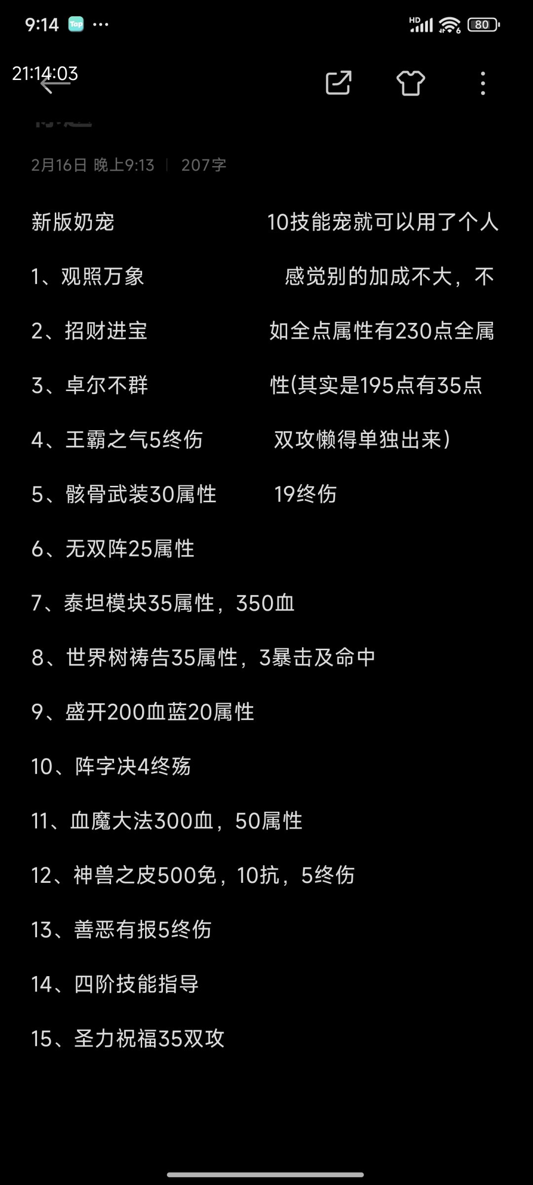 收集汇总了目前个人已知的辅助类和光环类不朽宠物技能,大佬们还有别的通用宠物被动以及来源吗?少俩位置[表情_开心] 不是强迫症的再带俩紫色就完了,有不少其他颜色的挺好。 宠物自己输出向的技能书太多了,强迫症还得要满孔成长好,一般人真做不来,真要肝还不如改[表情_捂脸哭] 所以我14孔宠呢??? 找光环顺手把其他不朽也弄下来了,顺手汇总了一下,有需要的可以参考自己挑,大概是不够全的,但是够强的应该都有