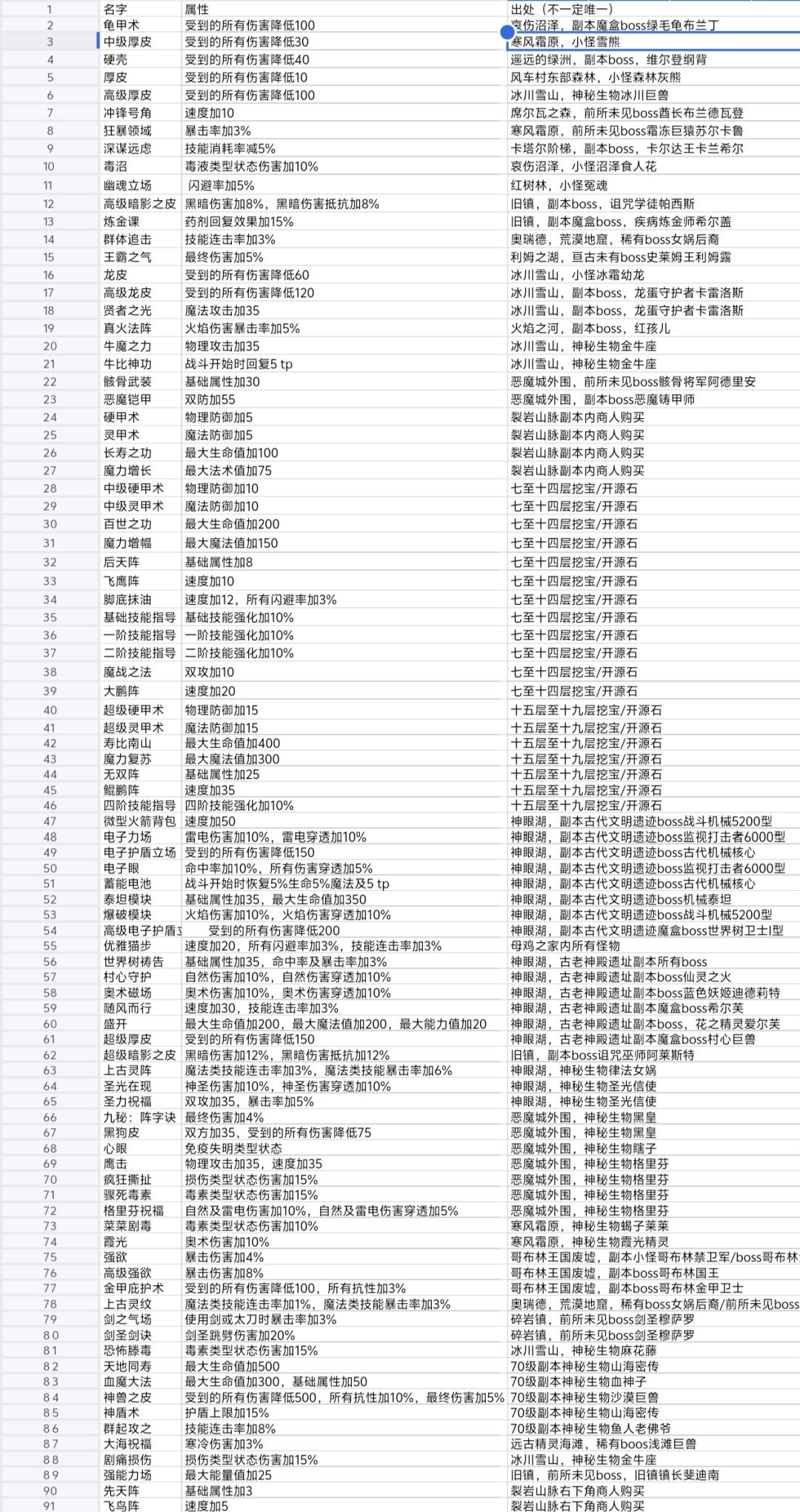 盾牌:25%(20层副本古老神殿遗址稀有BOSS树心巨兽,20层副本古代文明遗迹深渊魔王魔竜) 盔甲:25%(20层野怪掉落随机t6词条) 护手:25%(宝库BOSS哥布林屌丝) 鞋子:10%(19层深渊BOSS御龙者塑像) 腰带:10%(19层小怪) 项链:复活一次,保证第一回合吃上buff 下面工具人登场 武器:10%光环(远古宝库,天帝宝库) 副手:20%光环(60级副本第二个BOSS) 武
