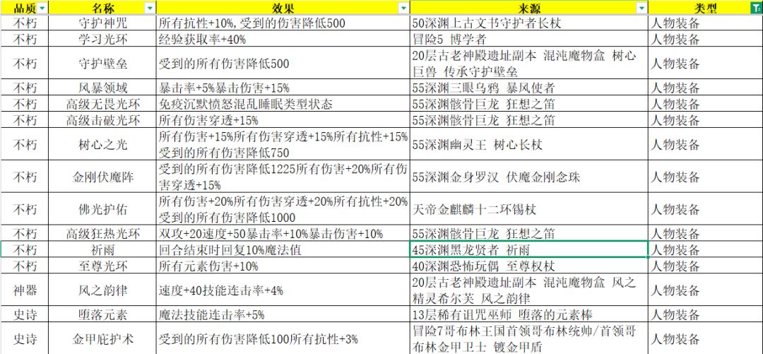 人物辅助/光环类装备汇总
