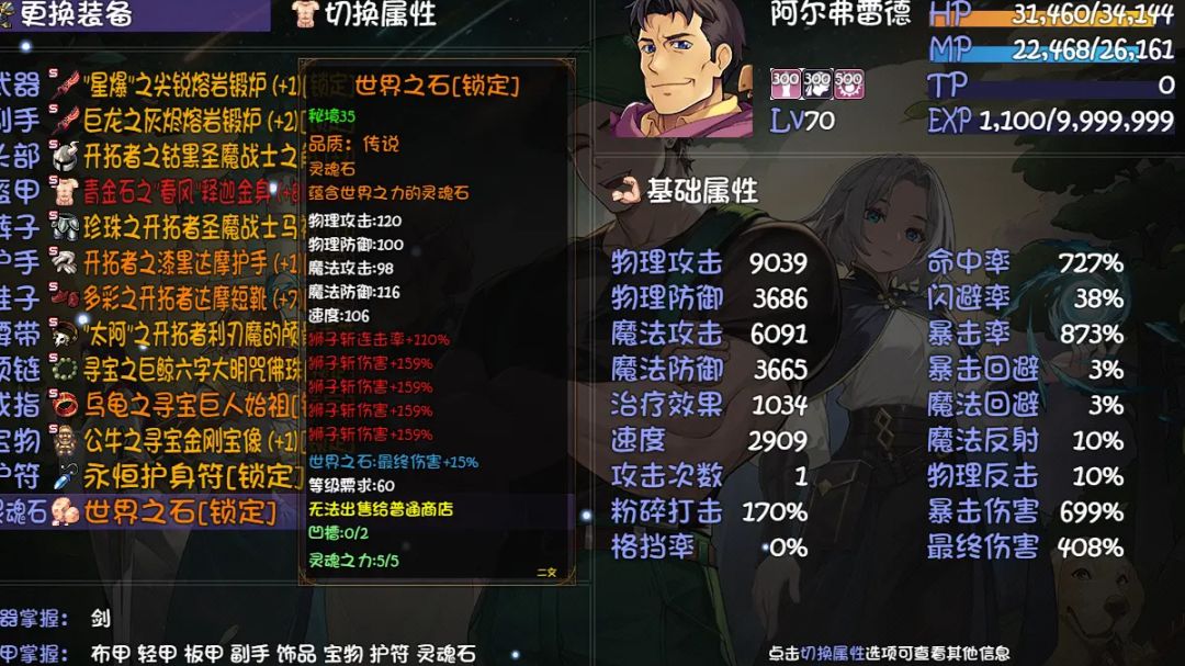 众所周知大剑士带压制的技能免疫反击,因此他成为了毕业速刷秘境的唯一选择。大剑士仅需要跳过免死词条,体感上比用其他C在筛选词条上节约了大量的时间(大剑士一速刷一次差不多一分钟,如果让宝宝后出手还会更快),而筛选额外不打的词条不仅看的眼花还会浪费宝贵的十秒钟。 装备没什么好说的,双红攻熔岩刀,一身开拓者护甲,有红可以穿红(我没有红头),红衣服可以作为达摩套组件。连击总共堆到200就够了,我这里灵魂石还