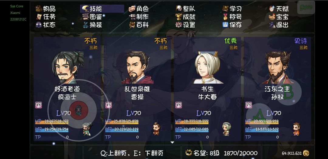 开局选择西斯莱(特性3%)+牛大春(特性技能3%)+孙权(特性3%)+曹操(特性5%) 宠物技能招财寻宝(15%)+宝物直觉(3%哥布林商人)+幸运兔脚(3%冰川雪地神秘宠物) 装备裤子5%项链10%宝物10%护符4% 因为平行时空的特殊性秘境可以掉绝望装备+20%属性 所以是6%12% 12% 4%泰坦寻宝可能更高但刷这么久没遇见就不计算了 另外因为平行时空的特殊性,泰坦不朽装备可以带角色的技能