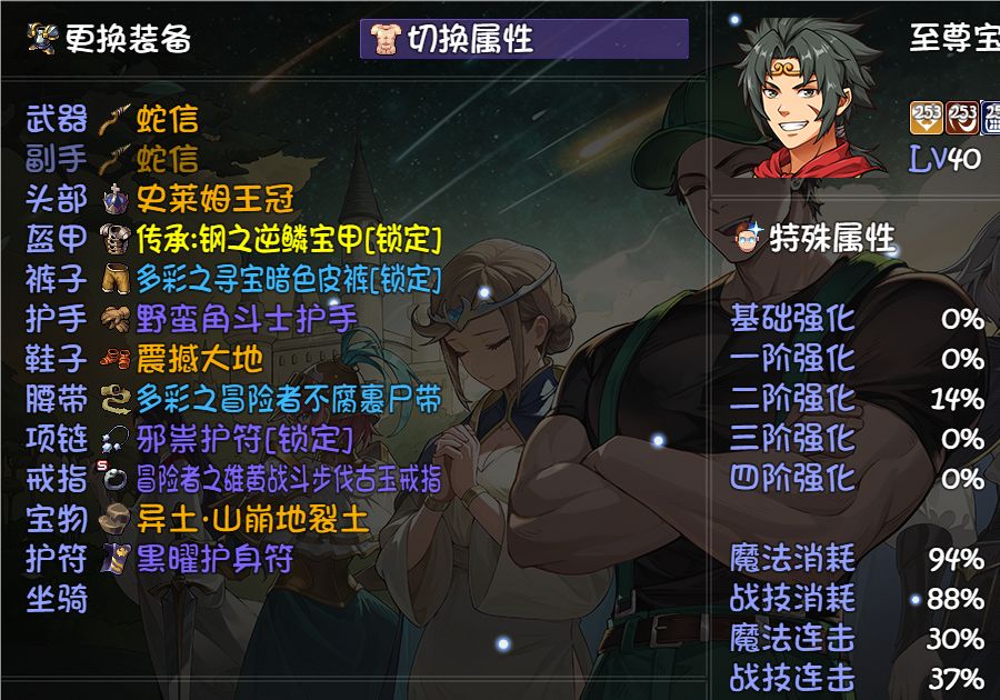 首先至尊宝核心被动 因为追加的横扫千军是物理伤害,所以我们堆物伤和所有伤。 关键至尊宝启动需要打火机,所以问题来了你愿不愿意用一个位置来换至尊宝启动。针对至尊宝打火机的人选我试了很多像火女,十字斩赫伯特,但这样子总感觉少了一个人物位输出,这时候我盯上了宠物位。 向大家推荐我的龟龟 因为是核心技能所以给它吃个卓尔不群 它这时候龟龟只能触发3次被动,所以要堆高龟龟的魔法连击,观照万象出列 还能给