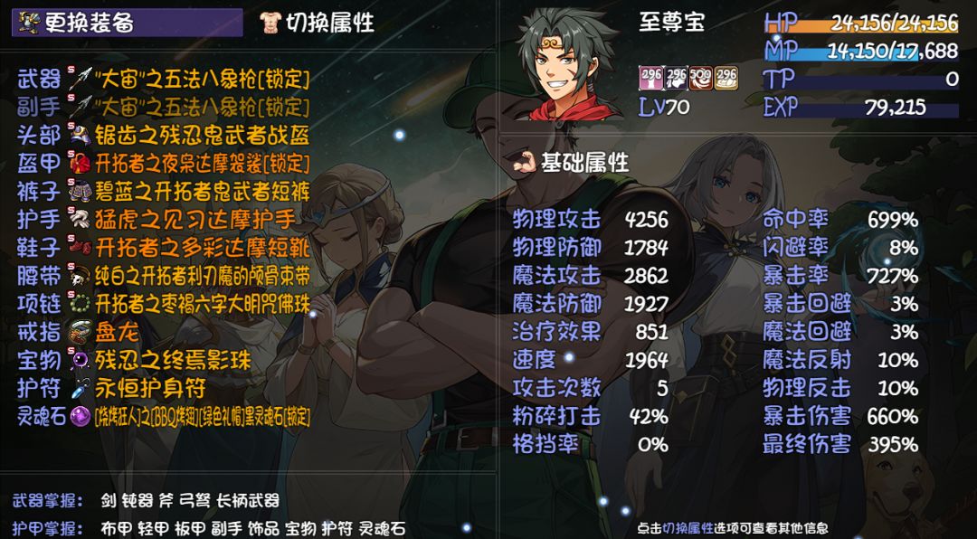开局选择西斯莱(特性3%)+牛大春(特性技能3%)+孙权(特性3%)+曹操(特性5%) 宠物技能招财寻宝(15%)+宝物直觉(3%哥布林商人)+幸运兔脚(3%冰川雪地神秘宠物) 装备裤子5%项链10%宝物10%护符4% 因为平行时空的特殊性秘境可以掉绝望装备+20%属性 所以是6%12% 12% 4%泰坦寻宝可能更高但刷这么久没遇见就不计算了 另外因为平行时空的特殊性,泰坦不朽装备可以带角色的技能