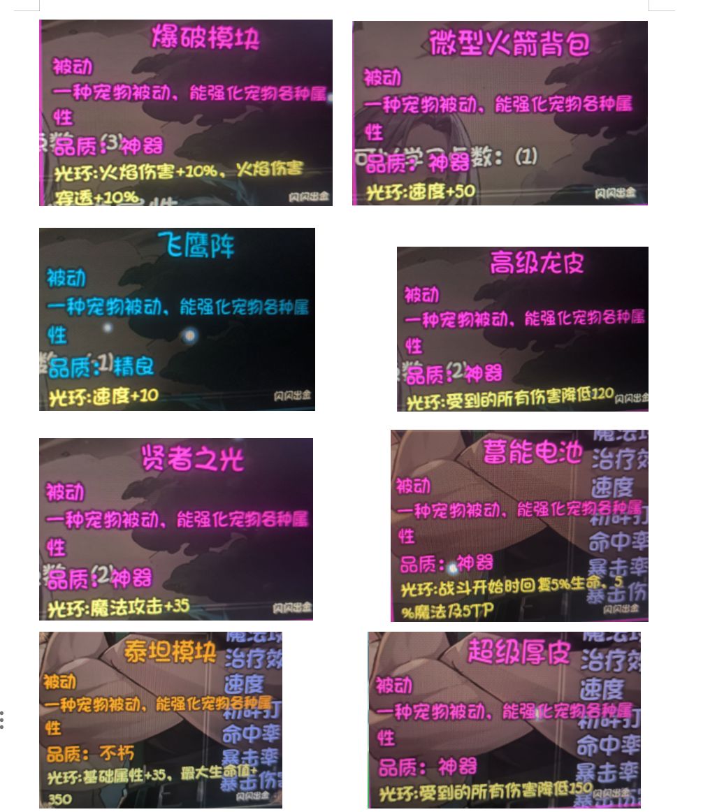 一、新增秘境神秘生物光环类技能,新增加孔道具,目前最大宠物被动为14+5,不包括卡bug20孔。 新增被动不确定是否更新完毕,待更新 二、新增新核心,后续游戏可能会上新技能,四海升平为辅助宠陷阱技能,后续开放技能书不建议学习该技能。原因见下文。 治疗造成的效果只受“治疗”影响(如下图渡世),不被“回复”(如上图四海升平)触发。四海升平无法触发宠物宝物和技能治疗增伤。想要宝物的治疗增伤仍然是渡世这类