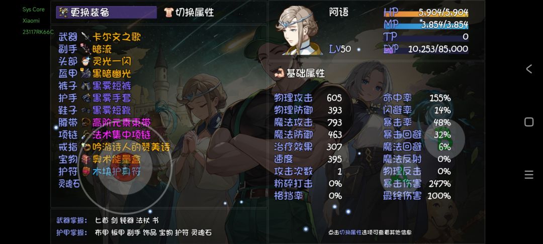 本攻略含有剧透行为,第一次玩的话可以自行尝试一下 (包括但不限于想要自行科研,自行尝试等等) 本攻略仅为了提供一些更多元化的玩法思路 阵容问题可以多多尝试 游戏中隐藏着很多值得科研的地方 攻略如有不对的地方,请指出 伤害镇楼 我目前练度一回合能打出的伤害(伤害不固定看你能连击多少) 装备图 说一下这一套的核心思路 魔法连击率 释放魔法类技能时有几率再次施放该技能 释放第二次时该系数减
