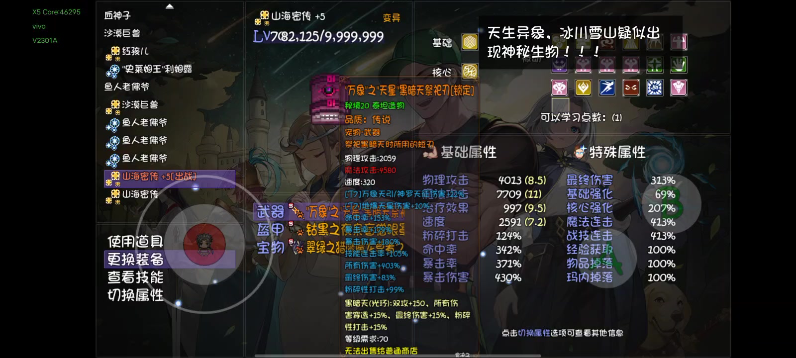 这暴击低的,暴闪高一点就没暴击。好的伤害技能都打了,还挑挑拣拣了一些垃圾技能凑到了18个,伤害期望30亿。如果宠物被动技能可以打同一个就好了,我直接全打50核心强化。