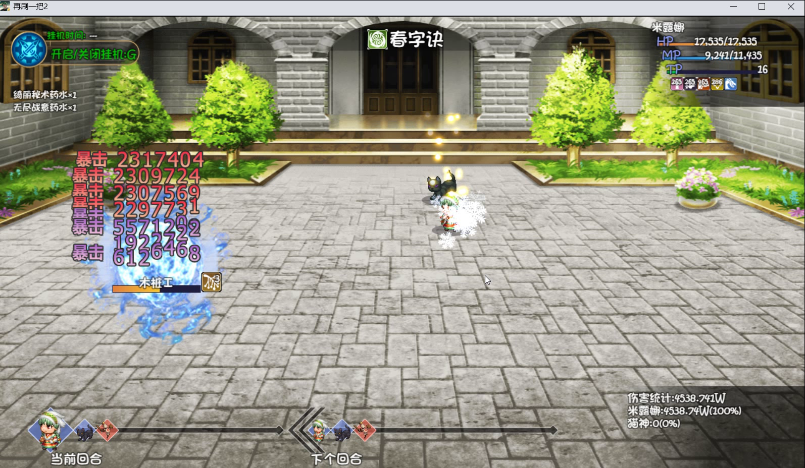 怪属性加了后各种秒人,不是很想沉淀,打算磕药磕过去,没想到还成功了,开始的时候,二阶段扛不住aoe,索性全体点上抗性拿下!