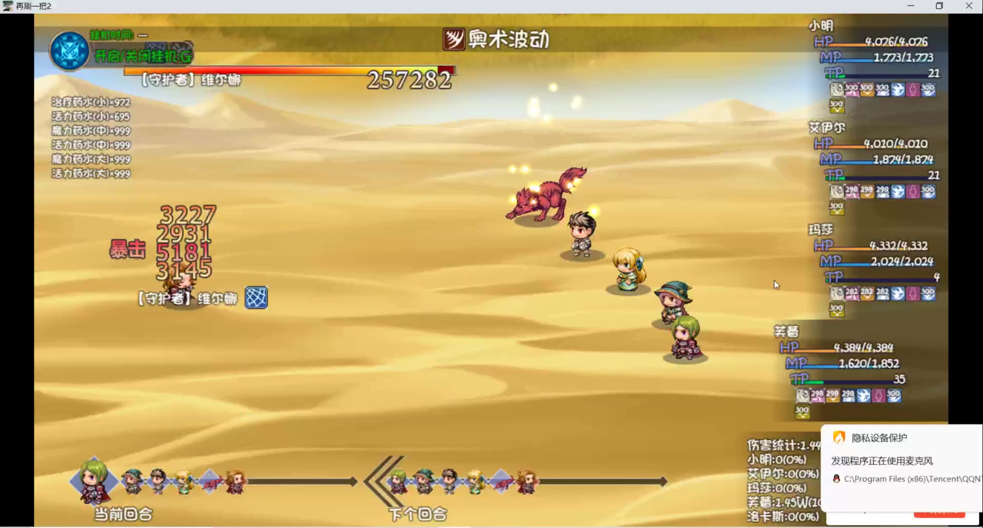 还是小明初始队,第十层比第九层简单不知道多少,最主要的一个原因就是,我们奶妈终于有复活啦。 此外,到了第十层,挖宝的一些装备也能装上了,小明直接转炎柱了,可以看到伤害非常可观,而且,这里我猪鼻了,忘记给小明换天赋了,甚至用的还是奥术波动的天赋。此外,我们奶妈走的拂晓,正好有个板甲神妙的猪之歌,就直接给奶妈出板甲了。 然后正经t一直防御,也能看到坦度相当给力。 还有就是,我们的宠物大爹也在发力,终于