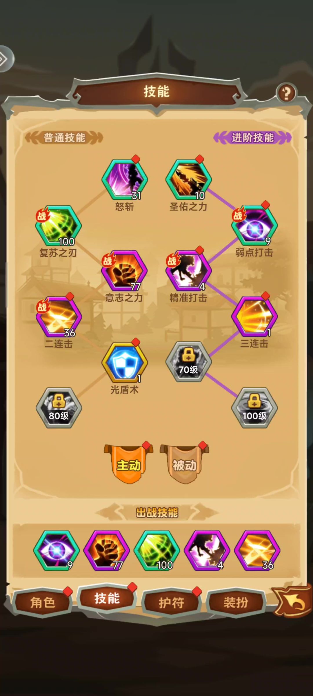 两个伤害加成的技能在前面,中间是能输出能治疗的,它因为CD快所以放在最前面,而且在释放前面两个技能掉的血可以被他一口回上来,回血技能先升满,有输出有续航,然后在升后面的两个技能,在七十五和百级的时候被替,所以要优先升级可以一直保留的技能#武龙争道