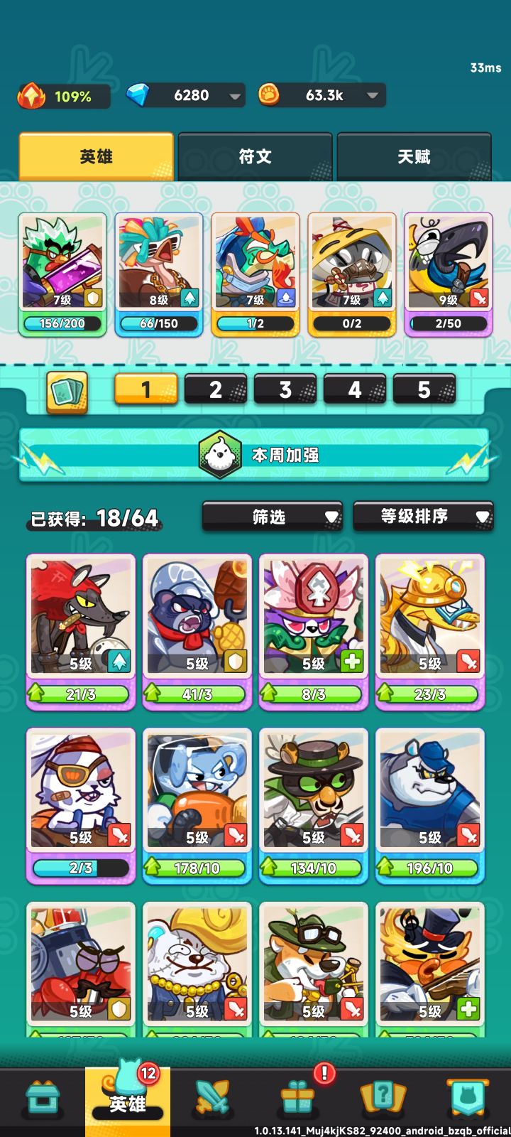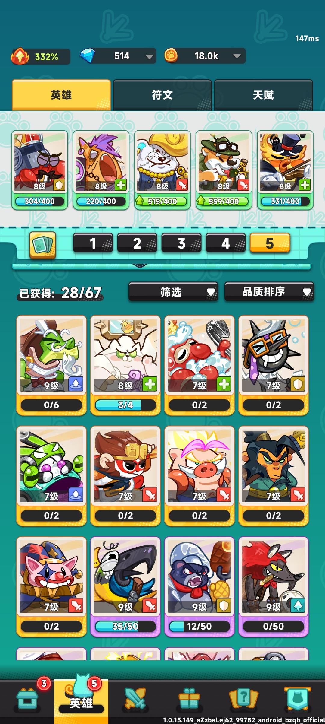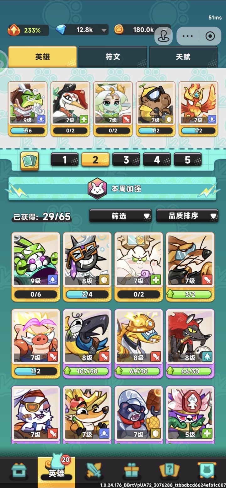 一、阵容方面零氪和微氪前期资源少,主要练一两个通用的优先,为后面阵容安排打基础,如龟丞相属于万金油金卡,可以优先先升级至10级。PS:本人运气不佳,所以才九级请忽略图片因素。阵容前期以鸩鸟医生、闪电鸵鸟、龟丞相为阵容主要框架,然后补充两张强力卡,如刺客狼、厨神熊、马桶橛子鹦鹉都是不错的选择。金卡在九级前用处小一点,尤其是行者猴、帝企鹅、小龙女、青衣蛇很吃等级,在10级11级前用处不大,如果有机会