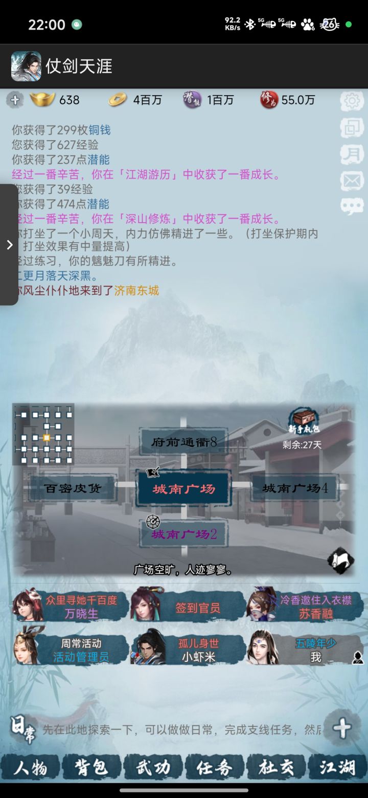 游戏武学设置真的非常不错,这一个特色也是我一直坚持玩下去的理由,区里的大佬真的很热情,天天带副本,带主线任务,我们免费白嫖,希望官方福利活动多多,越做越好,还有,特别是加强一下野球拳的交融啊,都升真了还这么拉跨,想我金庸群侠传的10级野球拳,直接是质的变化,给野球拳加个交融极吧😁