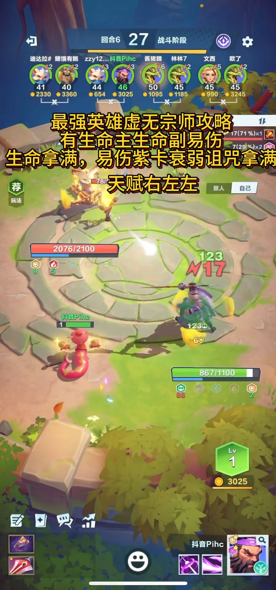 天赋: 右左左 【初期】1-8 连败为主15级才是强势期。 系统刷新可拿的白卡有:奥法之盾、奥法之伤、疗愈魔法、护盾破灭、强健身躯、尖刺之盾、这些卡后期需要补满。 易伤打击、损伤血魄、伤口感化、持久损伤、爆裂之伤、无形之伤、护盾打击、爆裂之盾、无形之盾、疗伤之盾、血魄之盾、长效防护拿1-2凑等级即可。 【中期】8-12 拿到第二件神器启动主易伤副盾。易伤优先10。 紫卡: 易伤卡衰