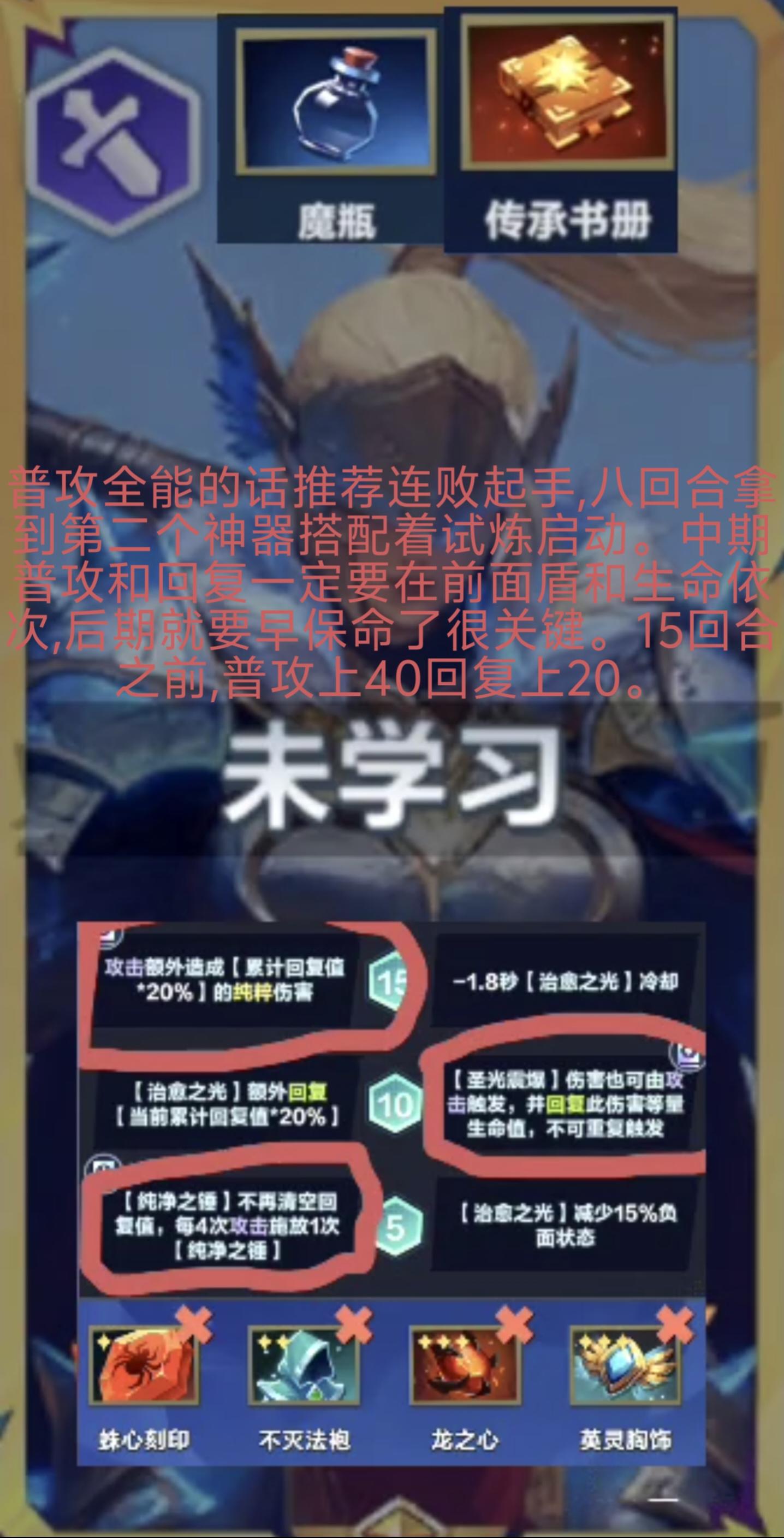 英雄前期强度很高,攻击为主打连胜!青虹剑起手! 后期流派以攻击、暴击、生命流派为主、最后拉回复、护盾找保命金卡。龙胆枪起手!