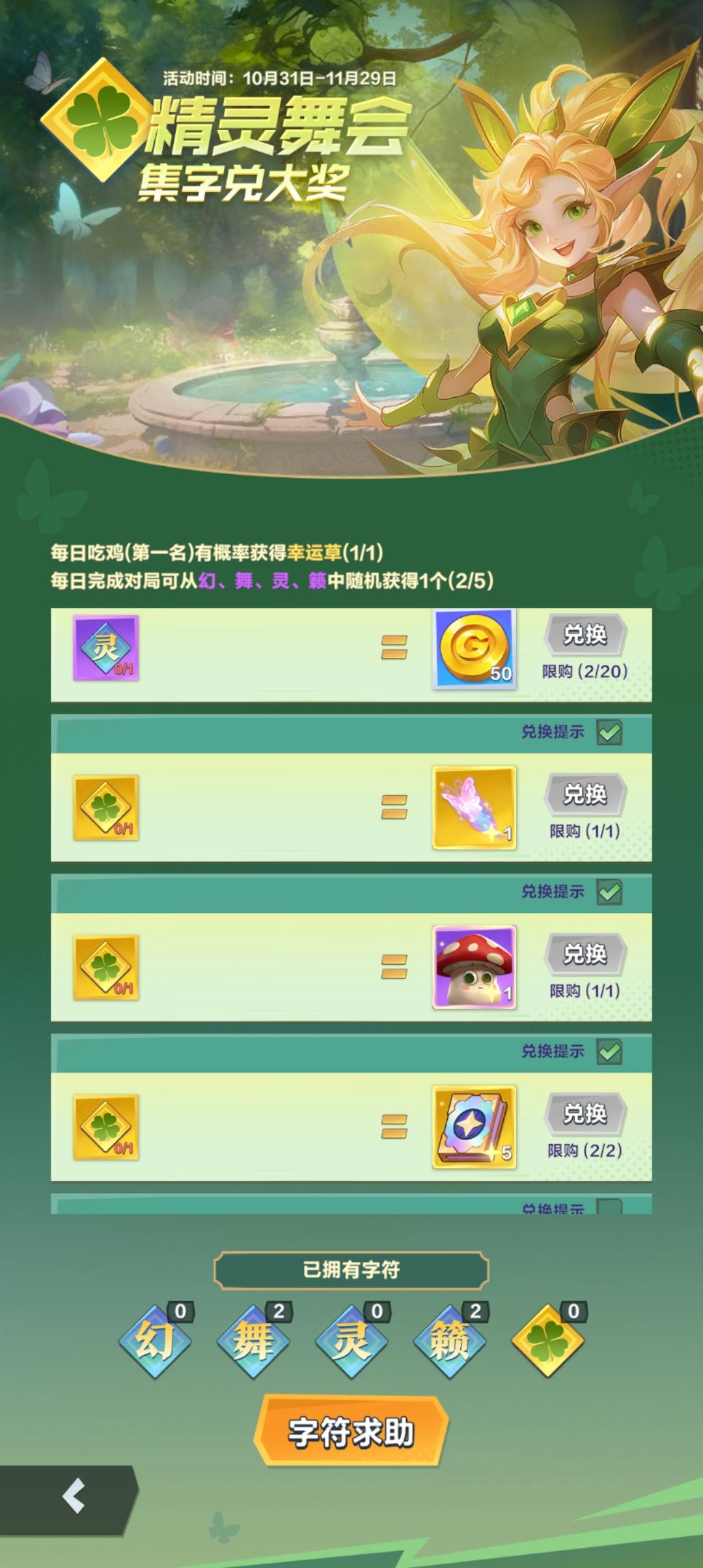 幸运草兑换完毕