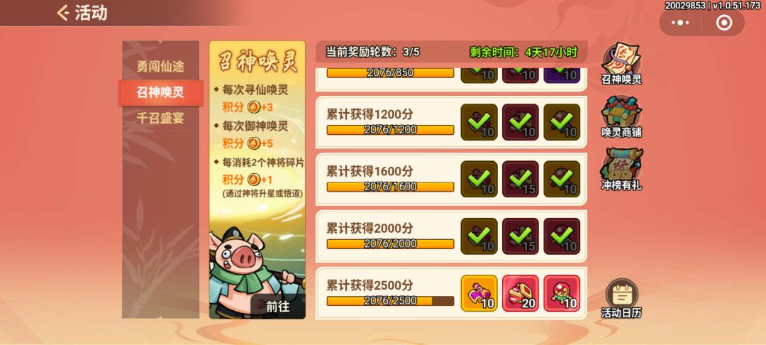 昵称:大台风 区服:121区 ID:20029853 大家好我是121区的大台风,玩游戏已经有两个多月了。以下是为新手玩家打造的超全攻略,涵盖新手开荒、资源获取、阵容搭配等核心内容,助你快速登顶仙途! 一、新手开荒必做清单 初始神将选择 首抽必得橙色神将雷震子(前排战士),次抽拿青蛇(群体输出),第三次十连抽优先选东华帝君(后排爆发)或元始天尊(高频