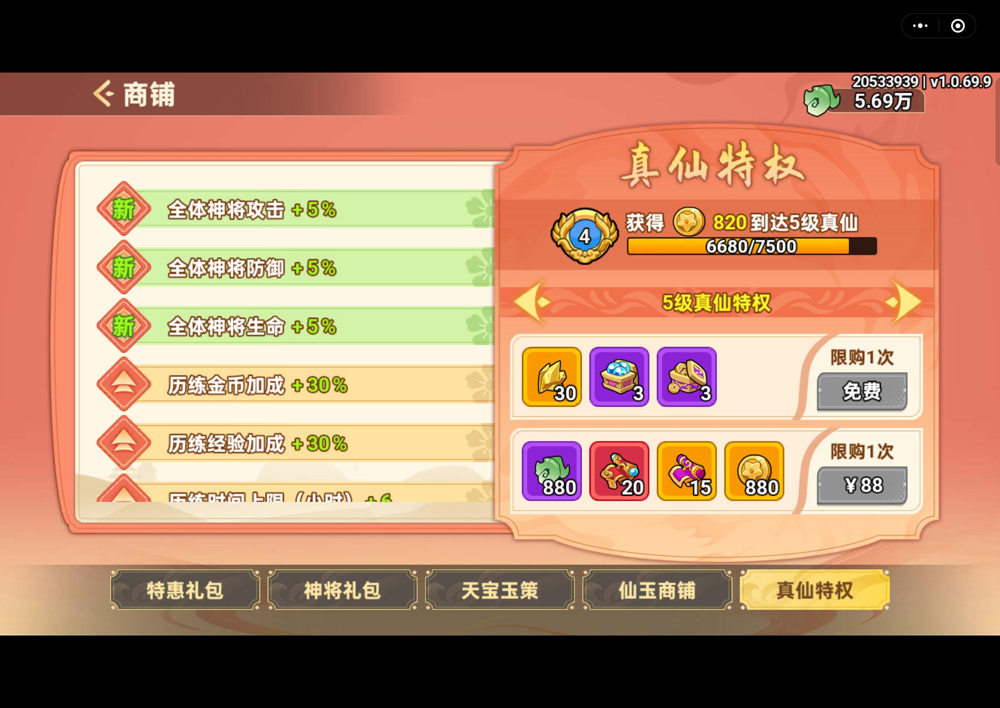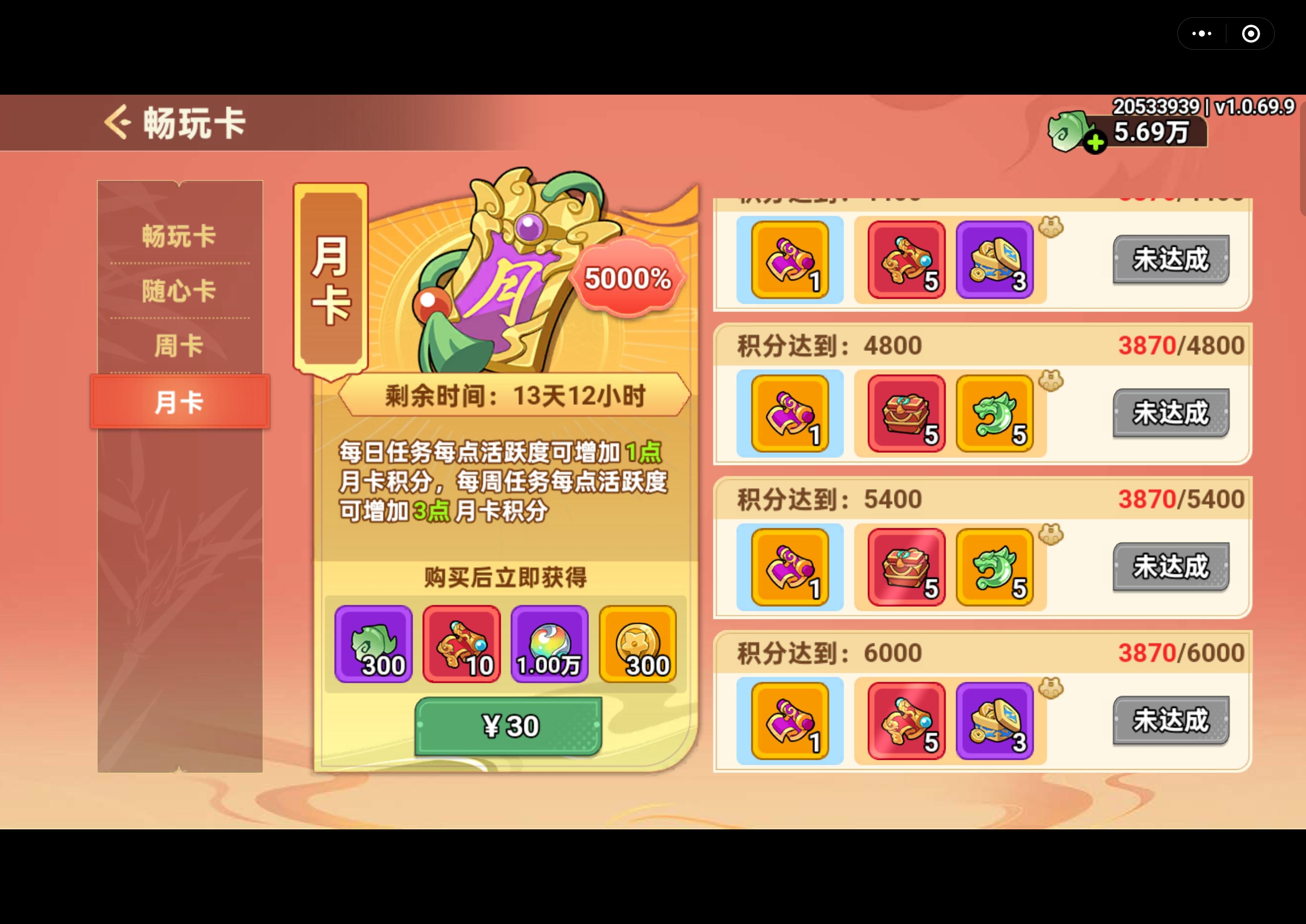 【战区:141】【账号:20533939】【昵称:赤乌玄兔未同宿】 氪金建议1.终身卡,如果打算长期玩,终身卡必不可少,每天固定288仙玉、斗法券、和自选道具,自选道具建议选万能碎片,前期碎片比悟道丹重要,后期虽然悟道丹更缺,但是给的是随机悟道丹,大型节日活动都可以弄自选悟道丹,这个我个人一直领的万能碎片。2.畅玩卡,如果长期玩,可以一直续费,这个是日常中性价比最高的充值地方,每天多一次