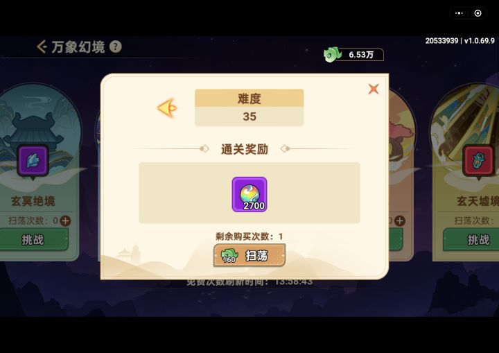 【战区:141】【账号:20533939】【昵称:赤乌玄兔未同宿】 攒玉攻略养成类游戏攒游戏币是重中之重,怎么收集仙玉就不用说了,哪里能领就领,然后每天必不可少消费仙玉的用处有,1.万象幻境的里面的扫荡,优先级为,璇玑>天池>雅艺>玄天>灵音>玄冥,其中前两个需一直扫荡,中两个可以根据自身情况,比如雅艺暂时配齐了,没有合成符可以先不换,玄天如果想再省一点也可以不换,后两个只建议前期换,灵音