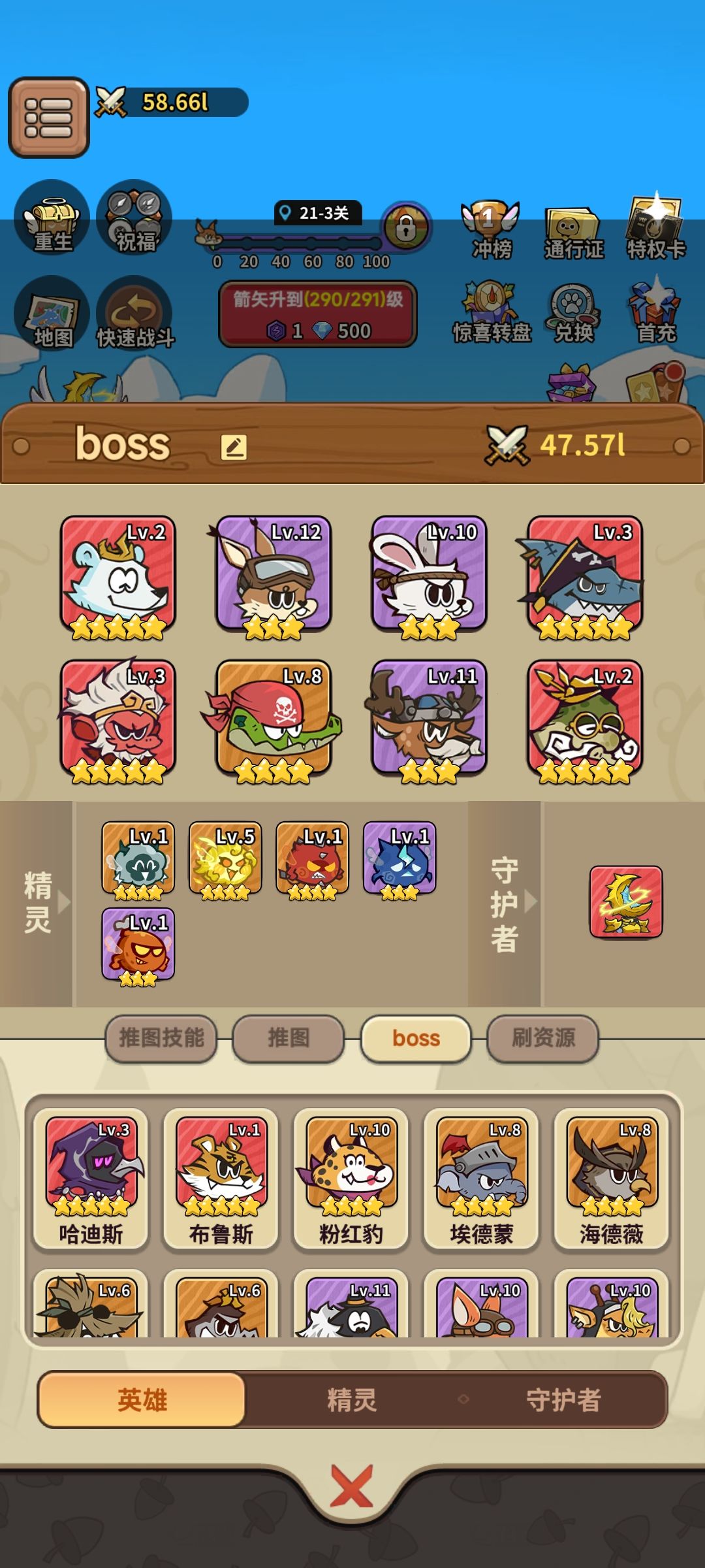 注:此攻略仅限英雄全满的情况下 此攻略仅限英雄全满的情况下 此攻略仅限英雄全满的情况下 推图阵容:粉红豹,潘达,老虎,鲨鱼,熊,猴子,哈基米,斯蒂芬博士 英雄排列的顺序如上 有人问,为什么第七个位置放哈基米不放死神,因为死神推图打群怪的时候很乏力,增伤也不多,到后期你的三星哈基米等级会比死神等级高一大截,把哈基米放上去,原本卡关的地图能推进一点点。 当然这个位置不是非要哈基米,你的彼得、托尼乔巴,