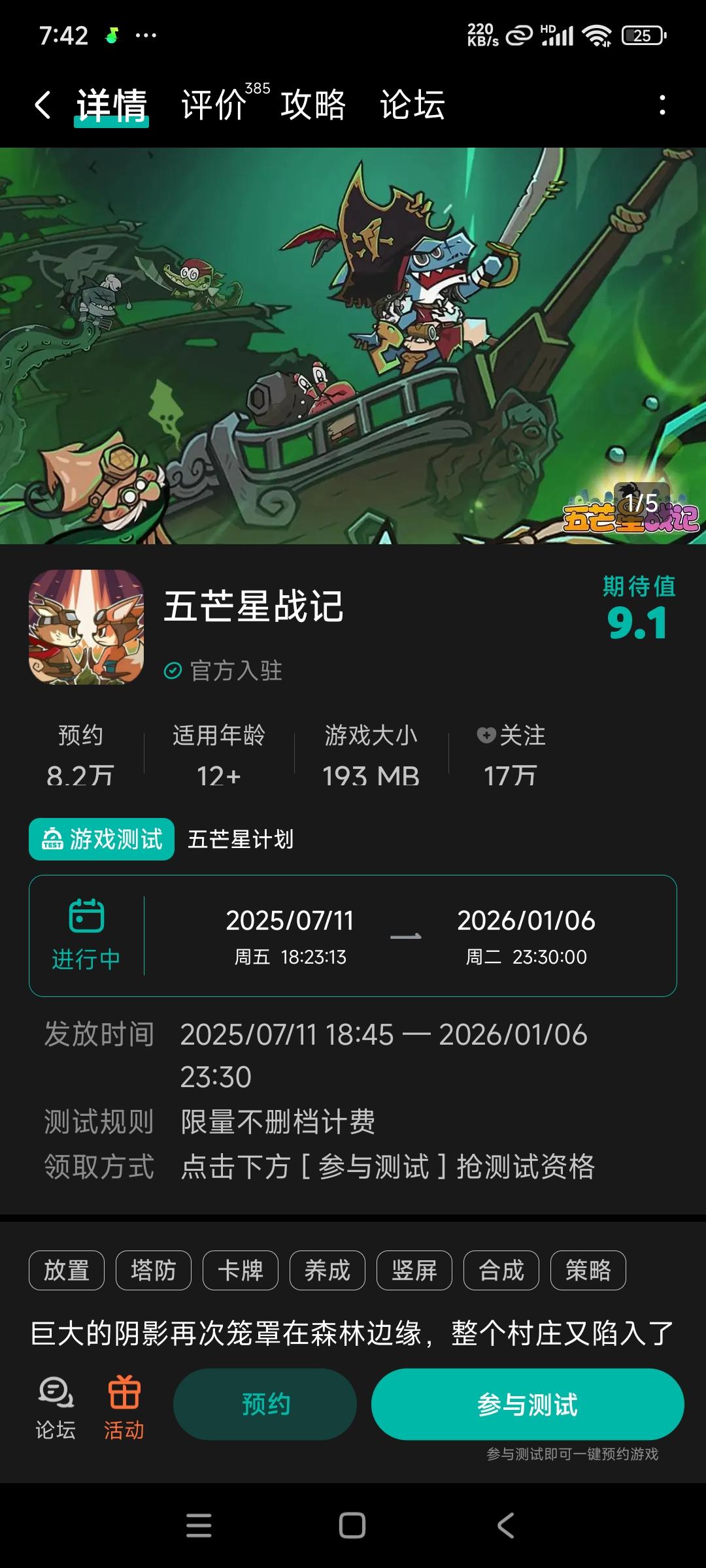 亲爱的弓箭手:万众期待的放置塔防手游《五芒星战记》,新版本正式定档1 月 8 日 10:00 全平台首发!踏入充满未知与挑战的奇幻森林,你将化身精锐弓箭手,集结强力伙伴、探索神秘秘境、抵御魔兽侵袭,开启热血冒险之旅!现在预约游戏,即可参与抽奖活动,助你冒险之路快人一步,轻松领跑全服!🎁 预约福利加码,京东卡免费抽!为庆祝新版本首发,我们准备了超值预约豪礼,助力冒险者轻松启程!一等奖:10