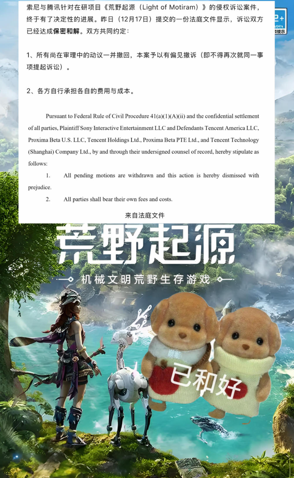 🤝巨头交锋落幕,索尼腾讯保密和解近日游戏圈一场备受瞩目的跨国法律纠纷,突然迎来了“大团圆”结局。涉事双方为索尼与腾讯,涉及游戏分别为《荒野起源》与《地平线》IP根据网传的法庭文件显示,索尼已正式撤回了对腾讯游戏《荒野起源》的侵权诉讼。据报道,双方表示已达成“保密和解”,并期待未来继续合作🤝前因据悉,这场纠纷始于今年7月,索尼指控腾讯的《荒野起源》在视觉风格、世界观等关键内容的设计上,