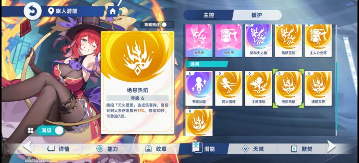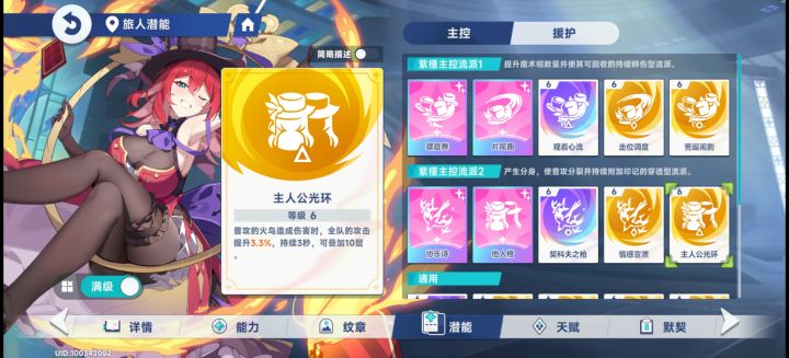 今天才抽的圣菈露。就研究了一下,有个紫槿主控、菈露援护的玩法。我照着作业抄,就感觉不对。这紫槿压根就当不了主控,这给得也太少了,没有一个潜能是给得多的。最多的那个77%火易伤,但是吃大招,且大招30秒。就只有观看心流值得抓而且抓满也就一般偏下水平。这能发挥出来援护位输出哪怕50%的水准吗?