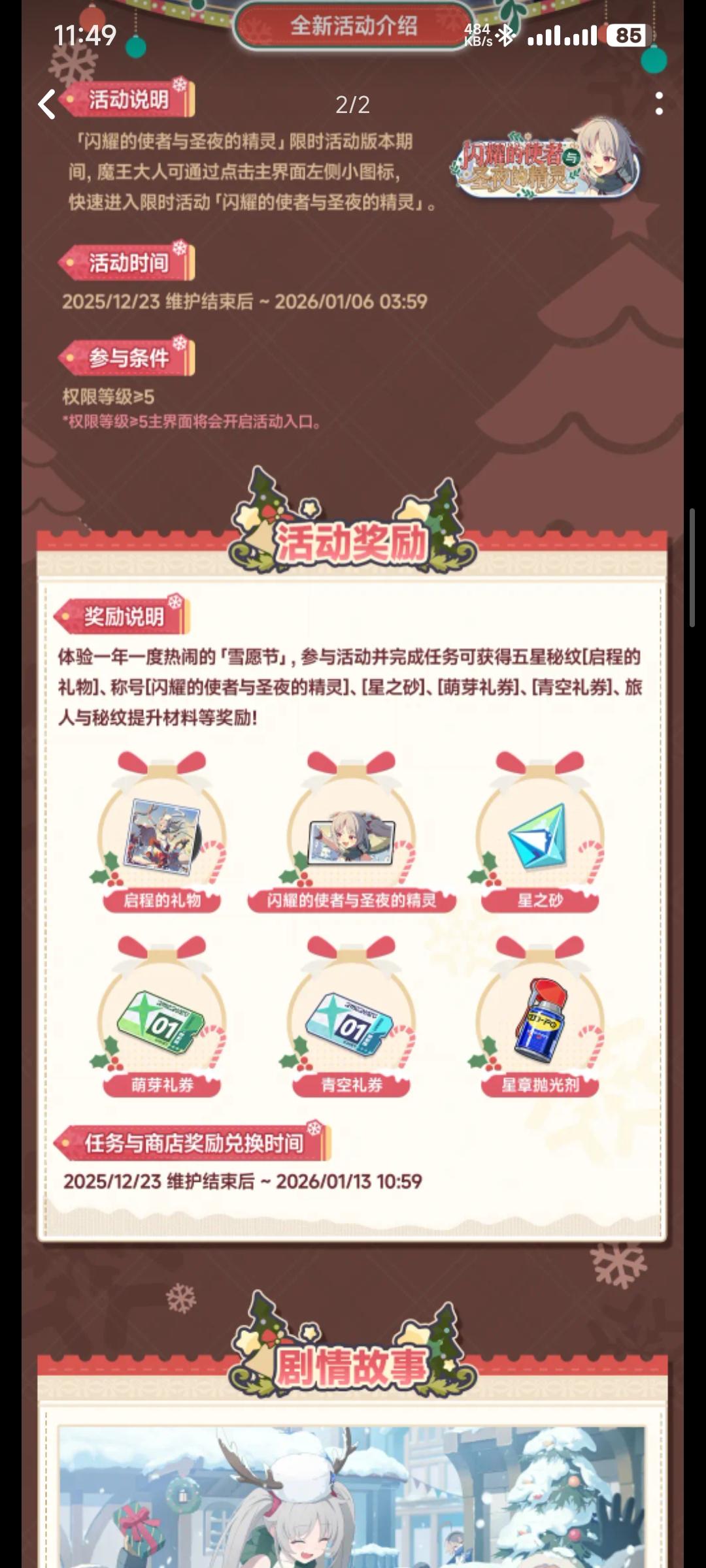 尊敬的魔王大人,欢迎归来!一年一度热闹的“雪愿节”即将来临,平时懒散的“那位少女”,换上了奇特的新装,而且意外地干劲十足?!全新限定五星旅人「菈露(圣夜)」、限定五星秘纹「雪夜惊喜」、苍兰全新3D战斗形象「落雪的赠礼」与鸢尾全新形象「1/365的你」即将登场。全新限时活动、诺瓦异闻、限时玩法等内容将在「闪耀的使者与圣夜的精灵」限时活动版本与魔王大人相见!查看长图可了解内容详情~_____