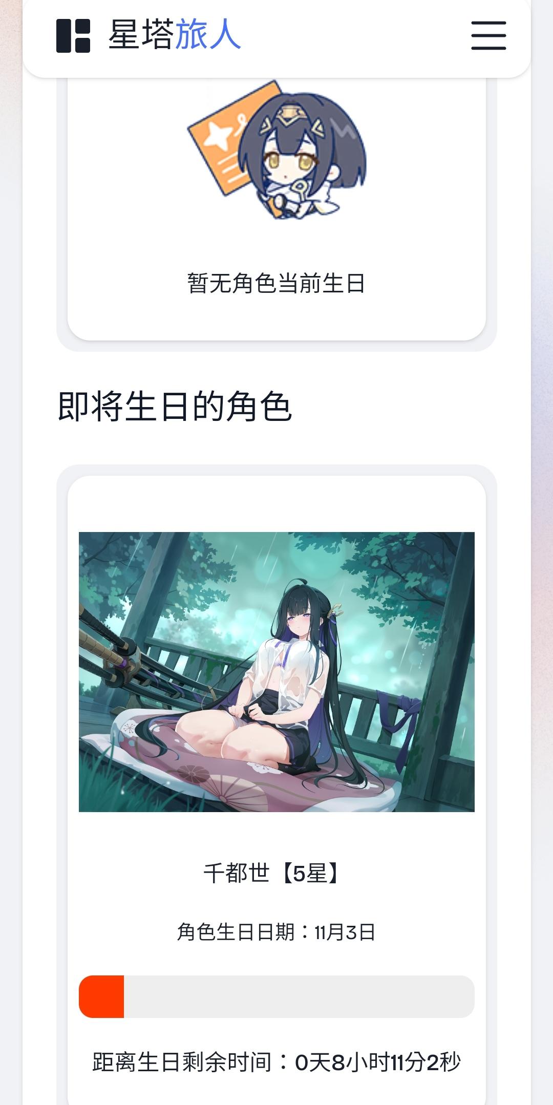 玩了一下你游感觉角色很顶,但奈何天坑的卡池使我抽不到角色...所以干脆自己搞了角色立绘,同时顺便做了一下卡池/活动倒计时及角色生日播报,可以进角色立绘下载