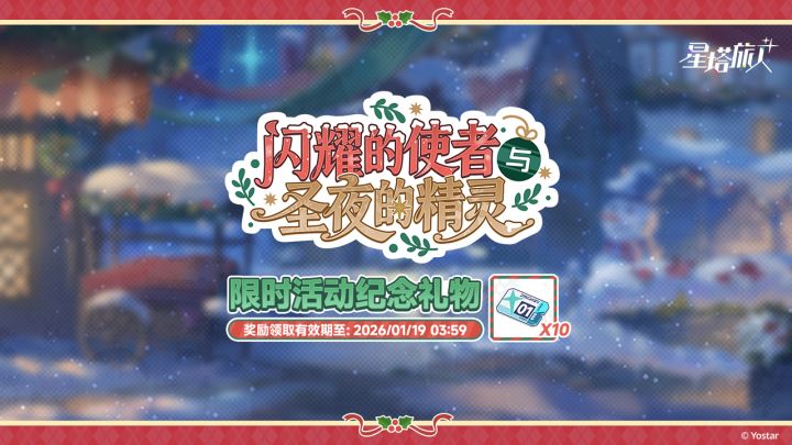 尊敬的魔王大人,欢迎归来!灯火循静谧的指引,沿长街蜿蜒而上;繁星如凝结的霜屑,于天穹尽头勾勒出无声的轨迹……节日的钟声即将敲响,愿您在这段冬日旅程,所行皆景。为纪念即将开启的「闪耀的使者与圣夜的精灵」限时活动,各位魔王大人可登录游戏通过邮件领取限时活动纪念奖励[青空礼券]*10!▌限时活动纪念奖励青空礼券*10▌奖励领取时间2025/12/21 邮件发出后 ~ 2026/01/19 0