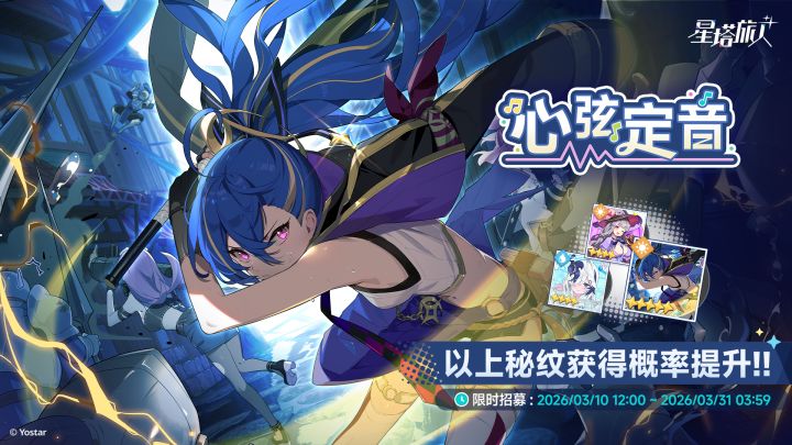 「命定奇遇」限时招募活动即将开启,活动期间,5星旅人「密涅瓦」招募概率提升!▌招募时间2026/03/10 12:00 ~ 2026/03/31 03:59▌招募说明活动期间,5星旅人「密涅瓦」招募概率提升;招募数首次达到120抽时,可领取1次5星旅人「密涅瓦」,仅限一次,在本次招募活动结束时将会清零,不可累计到下个卡池。活动期间,4星旅人「杏子」「师渺」招募概率提升!本期招募属于「旅