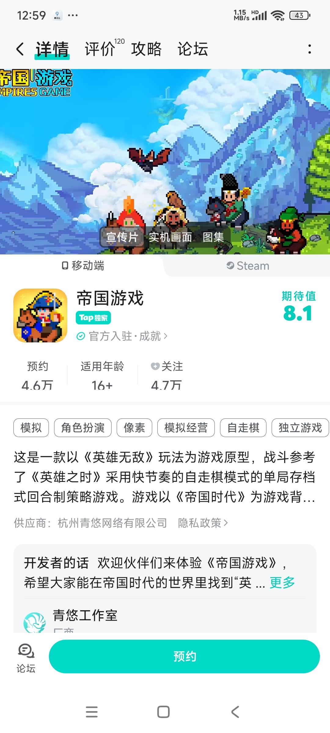 🎮名字:帝国游戏✅️平台:移动端(预约中)🏷️标签:自走棋策略、帝国时代背景、多文明种族、Q版像素------👉《帝国游戏》来袭!Q版像素风,多文明策略对战,等你来征服!-✨【游戏内容】✨以《帝国时代》为背景,融合《英雄无敌》与《英雄之时》玩法。✨采用快节奏自走棋模式,单局存档式回合制策略。✨玩家发展家园、培养英雄、建立部队、探索地图,击败对手。✨多个种族,以各国文明特点为风格