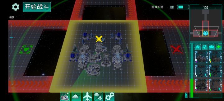 塔防类游戏,没有按照常规塔防那样着重于规划线路,而是不停推进,直至占领所有区域才算过关。敌人也是可以攻击防御炮塔的,在安排站位的同时也需要保护好设施,站稳第一片地之后,大后方是稳的,不会有偷袭。黄色区域是交战区,无己方炮塔的情况下无法看到此区域内敌人,摆放进任意建筑即可触发占领计时器并发现敌人,有一定放置策略。