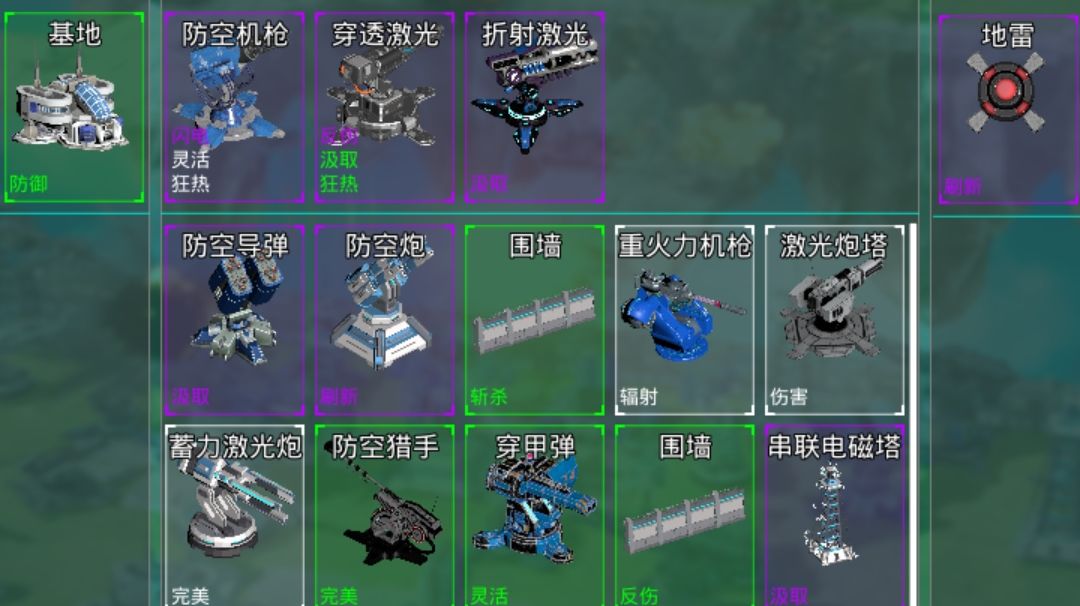 第一防空机枪,最好用的,便宜皮实,300 第二穿透激光,钢铁洪流的克制者,带上狂热汲取攻击加成 第三折射激光,范围大,刚好克制远程坦克,弥补穿透激光范围小打不到 阵型攻略 第一排2个防空机枪 第二排2个折射4个穿透 第三排过载塔 轻松拿捏