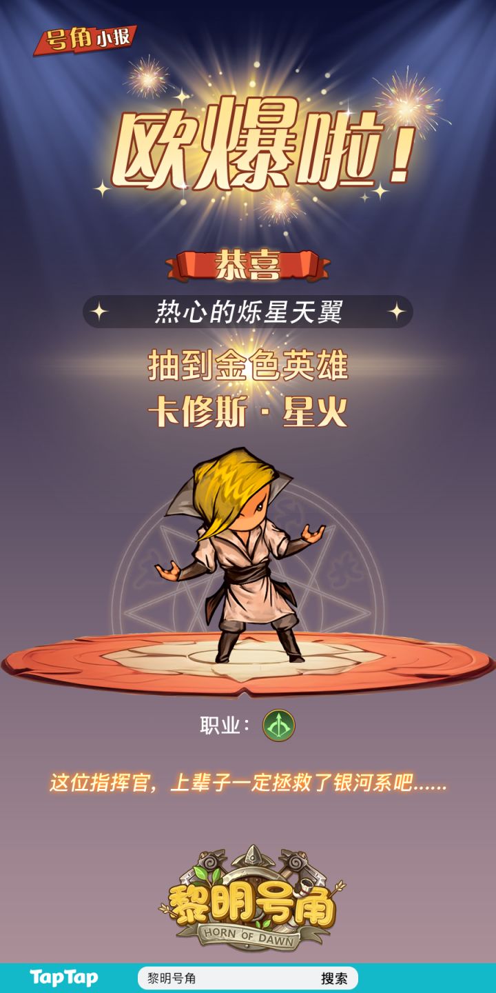【号角小报】恭喜@热心的烁星天翼 抽到金卡