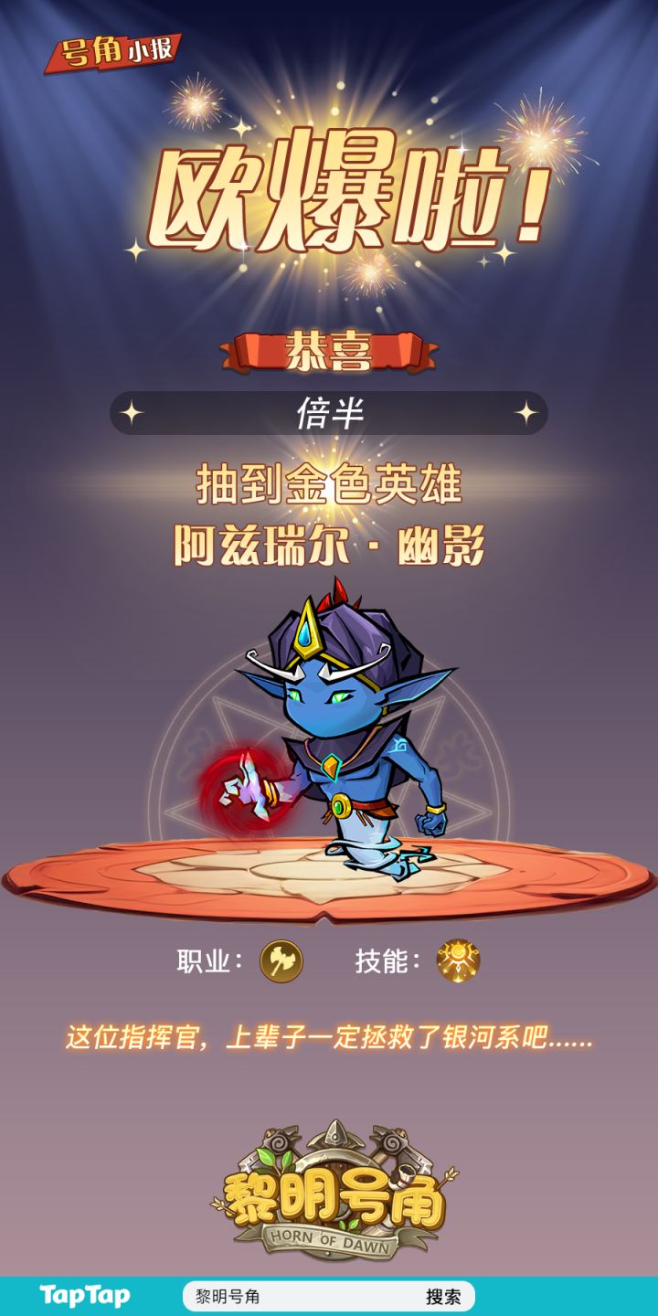 【号角小报】恭喜@倍半 抽到金卡!