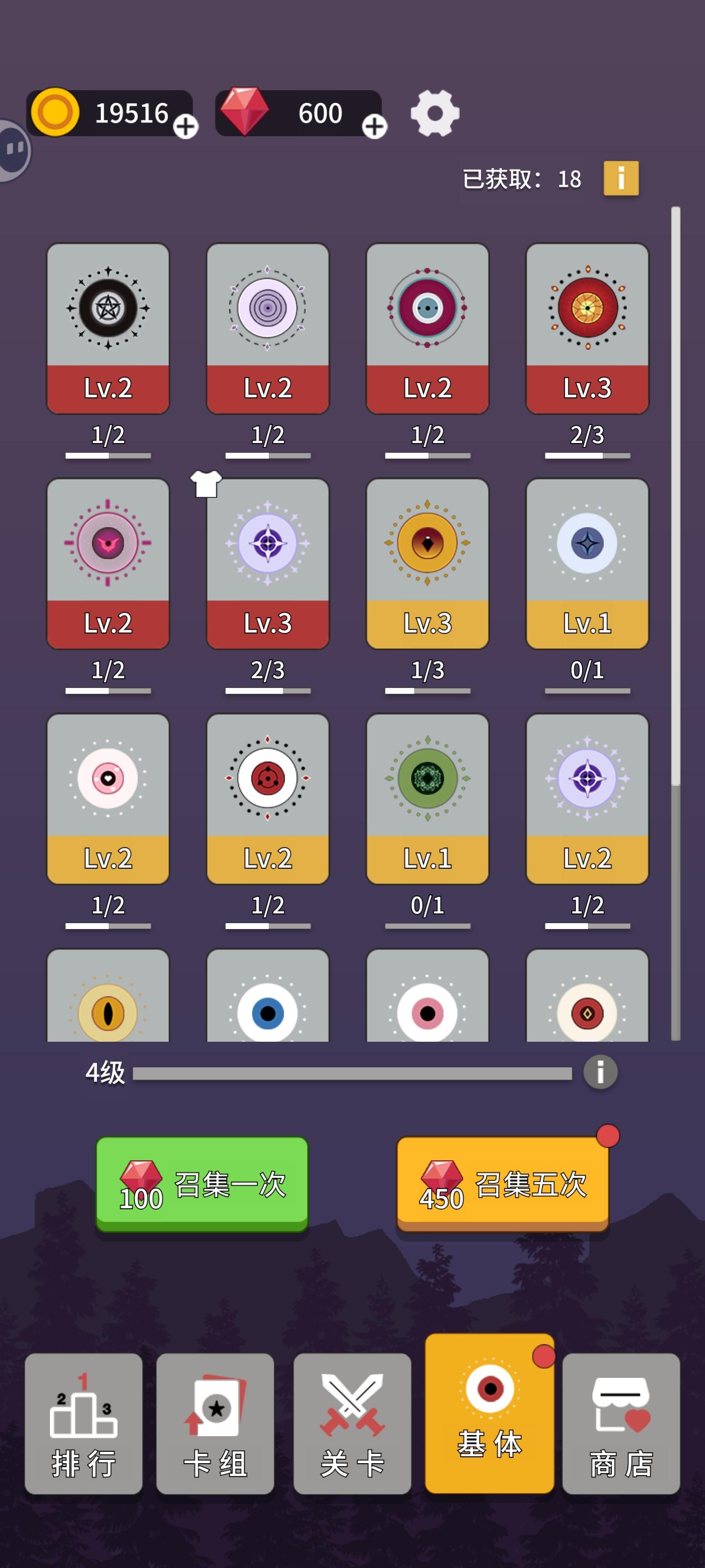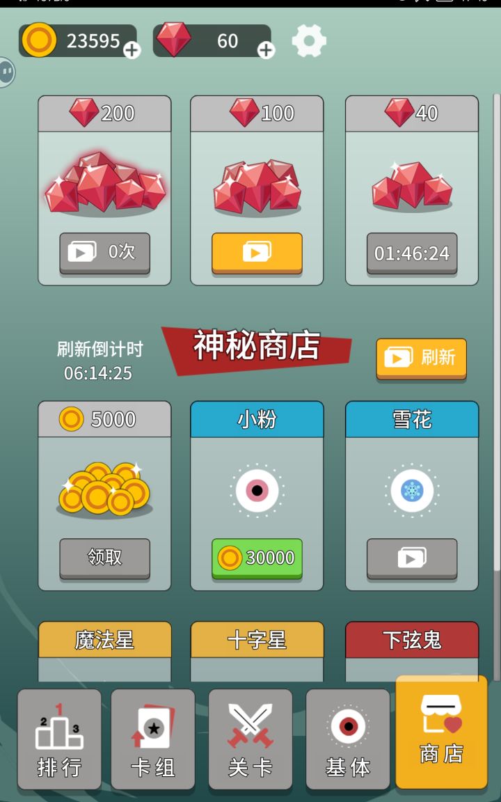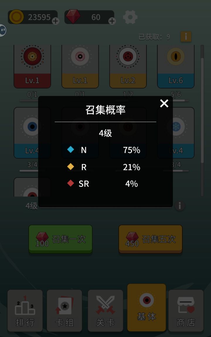 局外抽卡:使用第二种货币,450红钻5抽。抽取会提高召集等级,提高高星级获取概率。红钻的获取,除了签到里少量,每日5个任务奖励共250;每两个小时免费40;通关给50~100;无尽通过每3波一次递增奖励(一次性),上限300,最高到87波。(无尽金币奖励也较高但每天限3次)这些加起来不看广告有六七千?一百多抽。基体应该是18个,每个升满9级需要抽到45次,需要800多抽。但实际上已经满了的基体还会重复抽到……这几万起的红钻缺口,全靠看广告。每天3次200,通关的有一次翻倍,然后看几百上千个100的广告就行了。嗯,反正不限制一天看多少,看去吧。