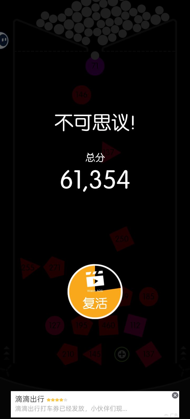 说白了就是打砖块2.0版,不同的普通平面几何图形随着自身数字的大小而颜色变得越来越红,并一步步向上,你所控制的球的能力只有改变方向这一点,剩余的全看天命,除非你真的研究透了他的"物理",能够信手拈来。