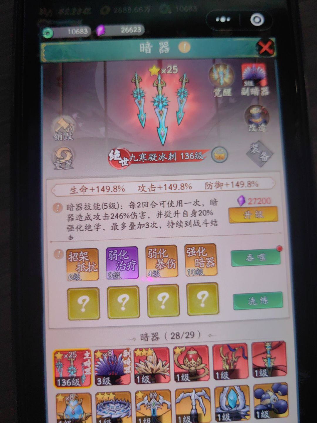 兄弟们我是燕双鹰啊,很久不见甚是想念,最近呢,我发现有好多玩家来直播间找我说鹰啊,有没有新流派,连爆和招反玩腻了,就是那种恶心一点的流派,哈哈,有的有的包有的,我昨晚播的时候还在说呢, 我还是按照暗器,至宝,神兵,招式,绝学,内功一个一个来说,这样兄弟们也比较好理解 暗器的选择:点穴不像连爆那样本身是有输出的,所以我们还是考虑暴雨去打伤害,如果说咱们有氪度比较高的玩家的话,也可以考虑主暗器暴雨副暗