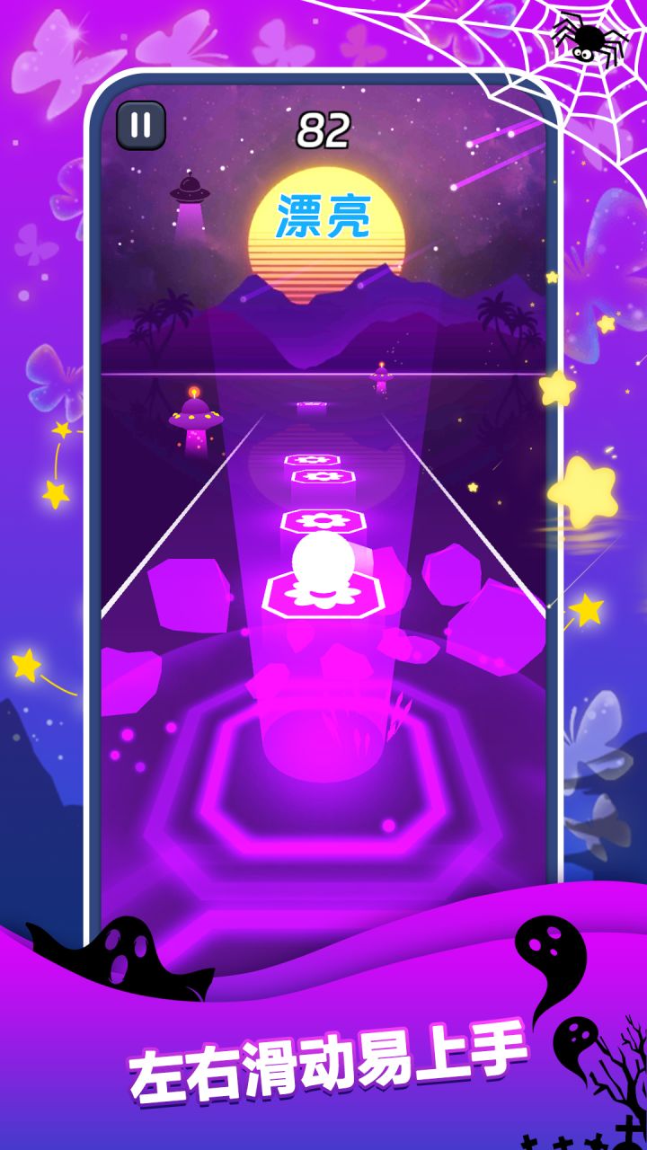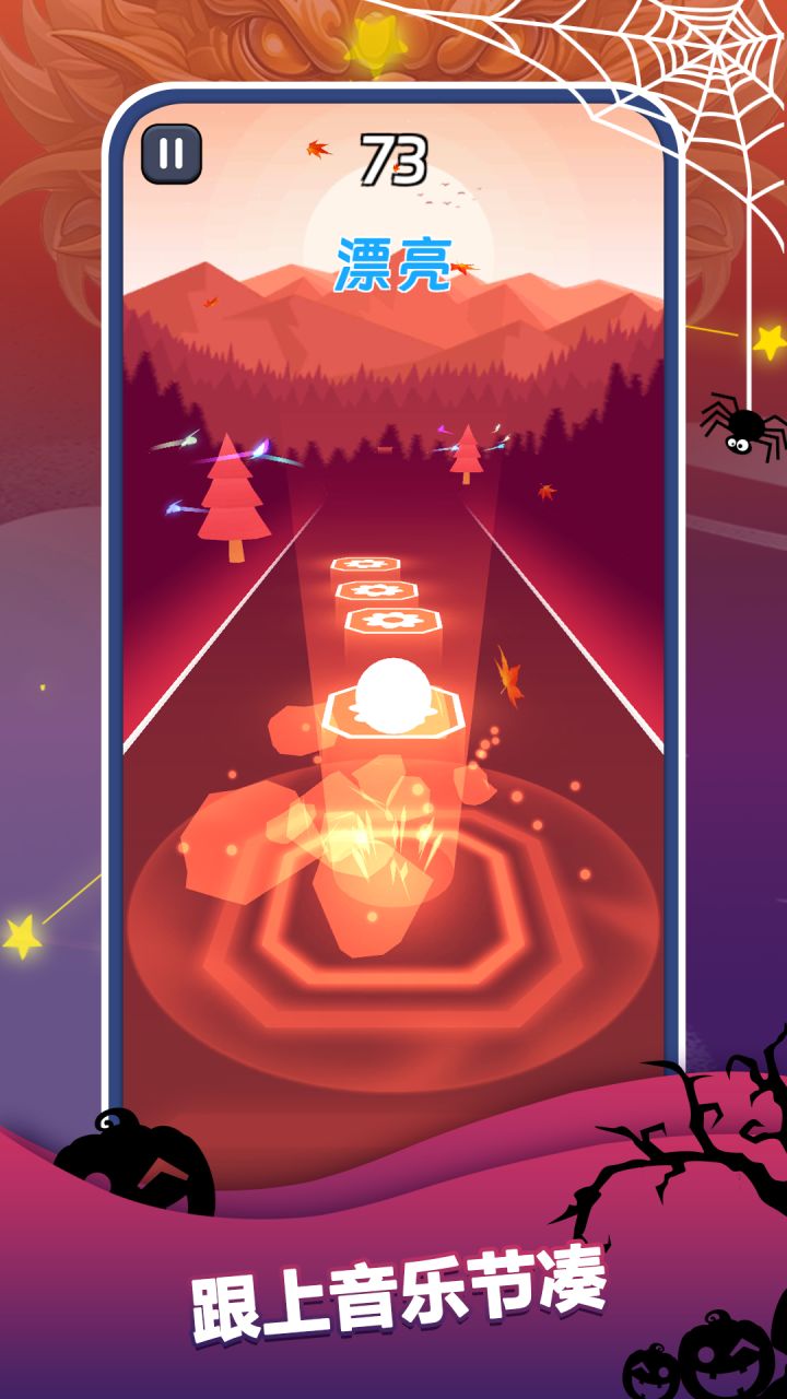 《节奏跳跃》是一款音乐节奏类游戏,单个手指就能轻松控制小球左右滑动,小球会自动弹起和下落。1、玩家只需控制好小球的落点即可,落在节奏块的中心点处得分越高,而且展示的特效也很炫酷。2、每首歌曲的场景都是随机出现的,让玩家在不断挑战同一首歌曲的时候不会产生视觉疲劳。3、歌曲列表中有超多歌曲可供选择,都是很带感的。#节奏跳跃 #发现好游戏