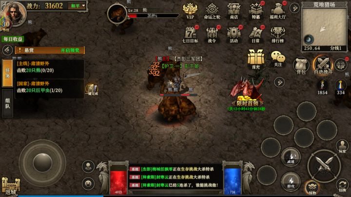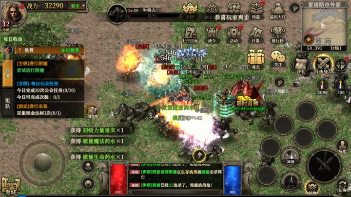 活动中心送宝使者:12-23点每小时刷新八只每只使者必爆800灵符,解绑号打出来的为不绑定。抢到就是赚到。天魔来袭:这个活动开区105分钟跟465钟刷新,掉落临时爆率卷。永夜君王:固伤怪,有时间就去打。如果想要解绑材料必须开通98特权,首冲的话有四轮天选之子抽奖。建议至少首冲,如果天选中了有68累充的话就可以激活会员,会员有地图传送功能。