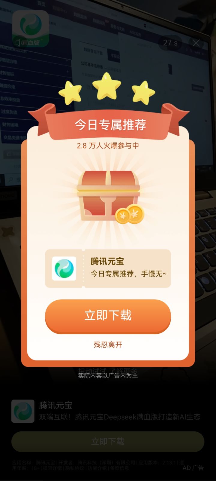更新缩短了广告时间都有40多秒,还中途需要你点击广告弹窗才能继续播放广告,甚至最后结束了广告点那个❌都给你弹到广告下载页面,就离谱