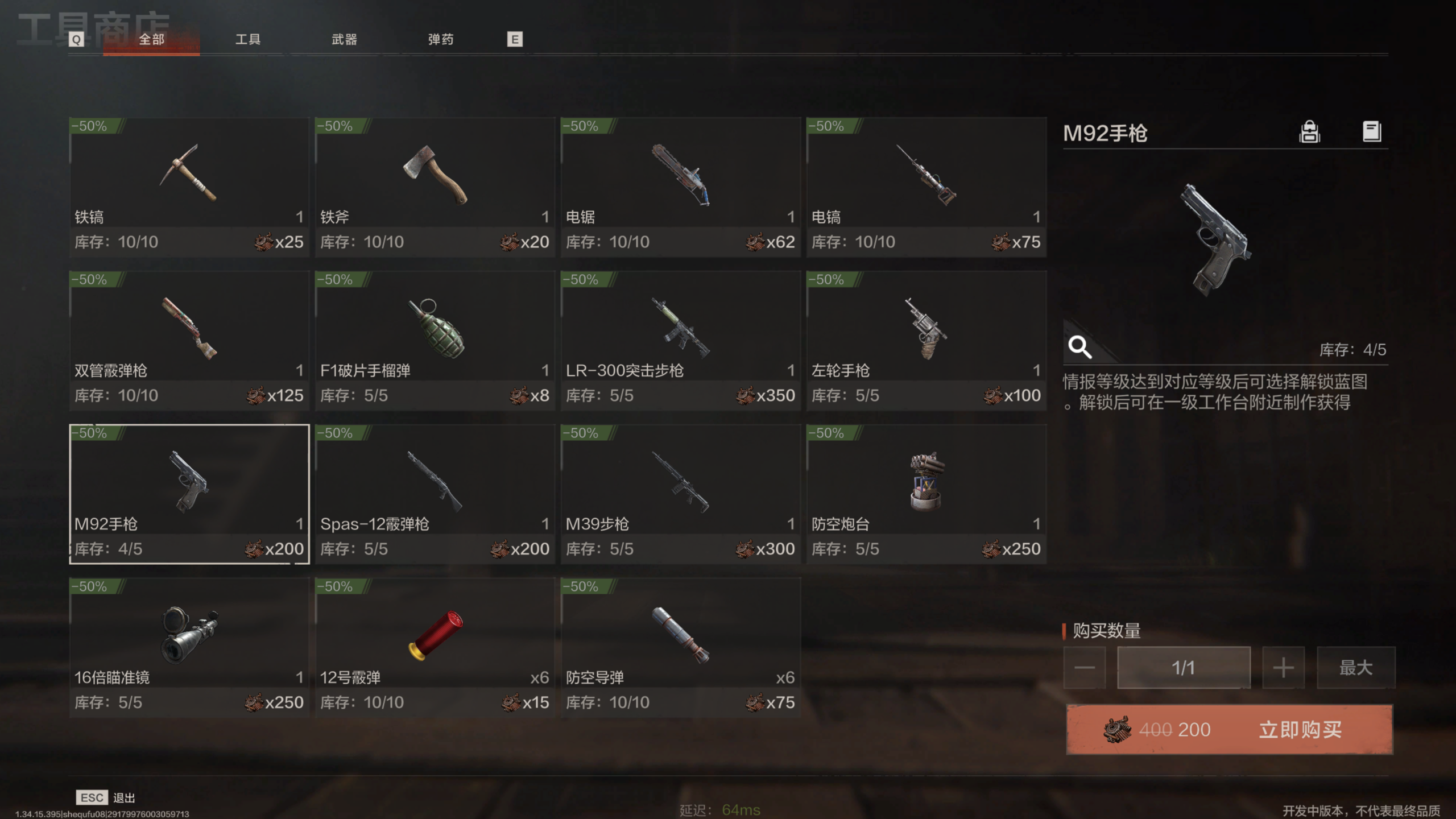 萌新教学【进阶2.5】 【更好的装备篇-交易篇下】-------------------------------------------------------上期介绍了强盗营地和谷仓的用途已经位置,本期主要重点为前哨站和渔村的介绍。须知:所有的商店物品均会随着战局开放时间进行打折目前最高50%安全区范围内将无法收到伤害以及使用任何伤害类武器,拥有危险值将会被炮台攻击如图所示一. 前
