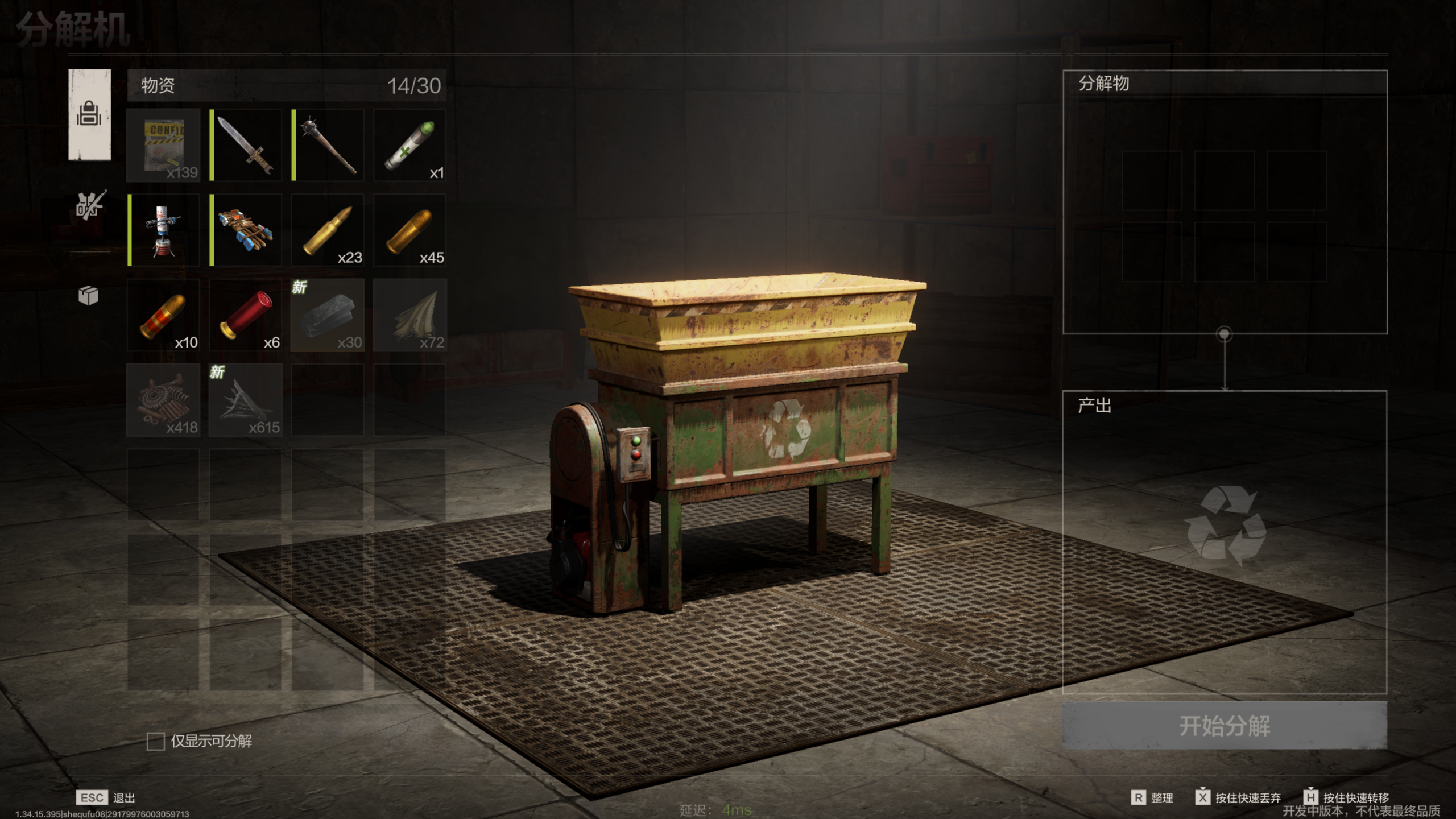 失控进化前期速通攻略进入游戏后先打开地图,标记好中部偏右区域的前哨站位置,以此为首要落地目标。抵达前哨站后,找到建筑物旁的金属桶,用手中的肥皂持续敲击桶身,多敲3 - 5个桶,直到敲出针线包为止。若布料储备不足,可去前哨站周边采集仙人掌,之后带着布料和针线包前往安全区,将针线包放入分解机分解,分解时需等待对应时间,期间可处理其他物资但不要远离分解机。分解完成后打开背包,用分解得到的材料,消
