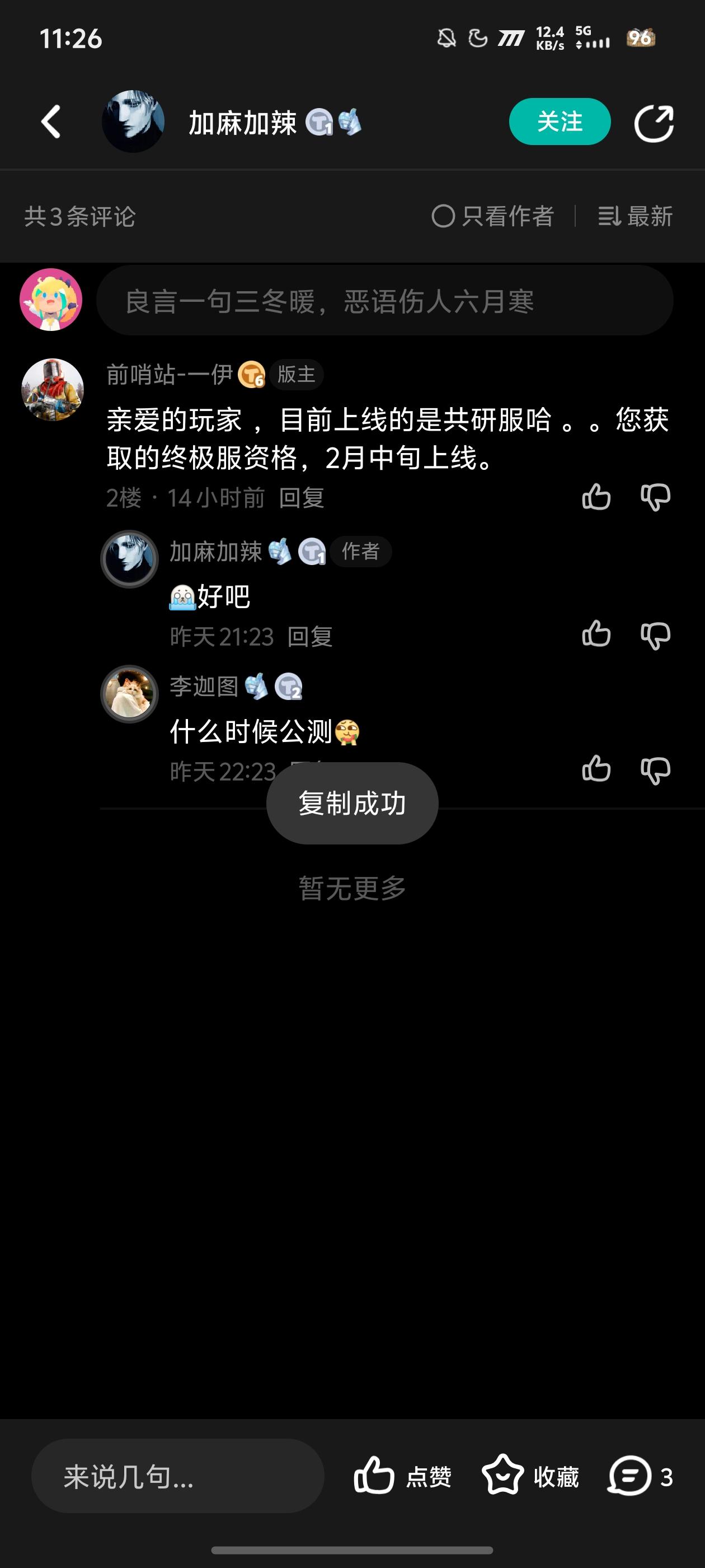 家人们,体验共研服第一期资格查询及预下载正式开启啦!之前报名体验共研服招募的兄弟们可以前往报名平台查询资格了哦~具体查询及下载指引可查阅:没有获取体验共研服资格的兄弟也不要气馁,小黄和论坛管理员每天都会在社区冲浪,每天不定时不定量随机送出体验共研服资格~大家在论坛保持活跃,就有机会被小黄或管理员锁定哦~同时!我们2月中上旬开启的“终极测试”还在火热招募中!做为游戏正式公测前的最后一次测