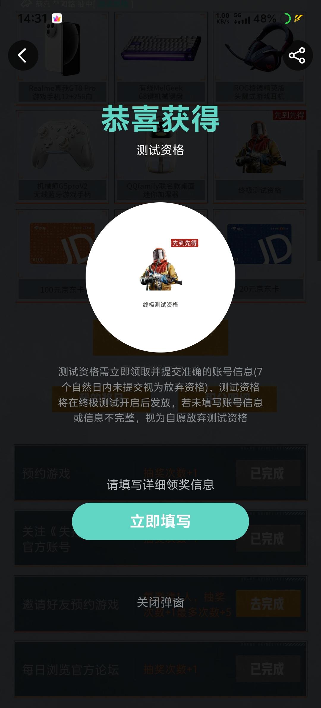 我抽到资格但是显示领奖信息已截止是怎么回事,求解答,我真的好想玩这个游戏啊连抽了好几天终于抽到了