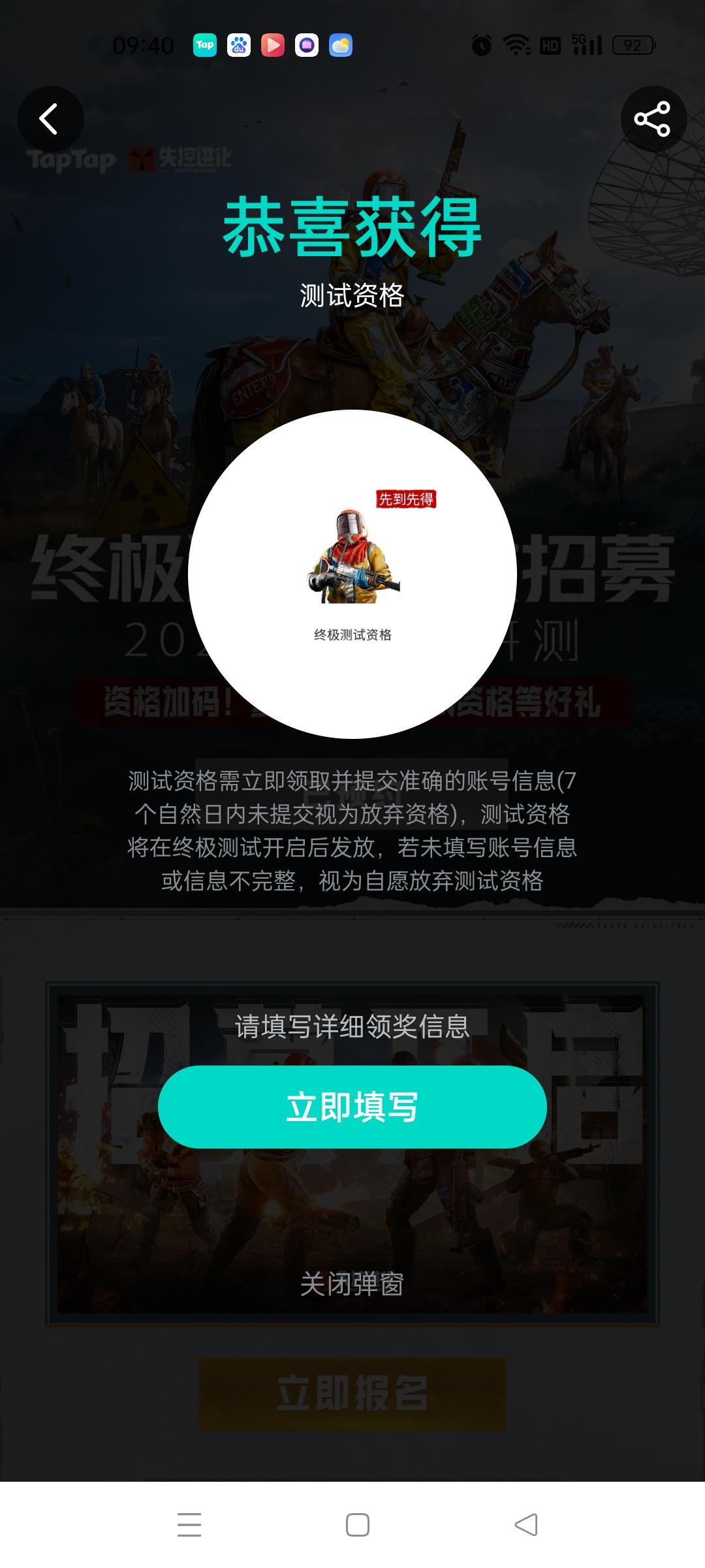 获得测试资格了填不了qq
